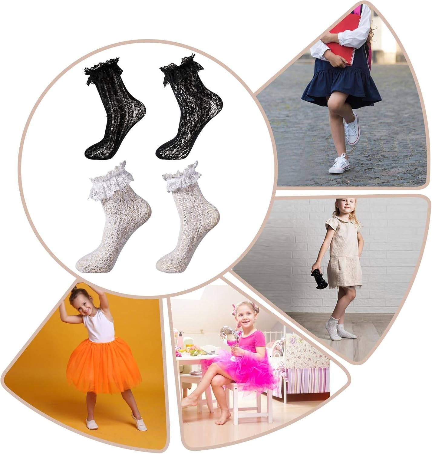 4 Pairs lace ruffle socks Lace Socks for Women Ankle Ruffle,White Black Mesh...