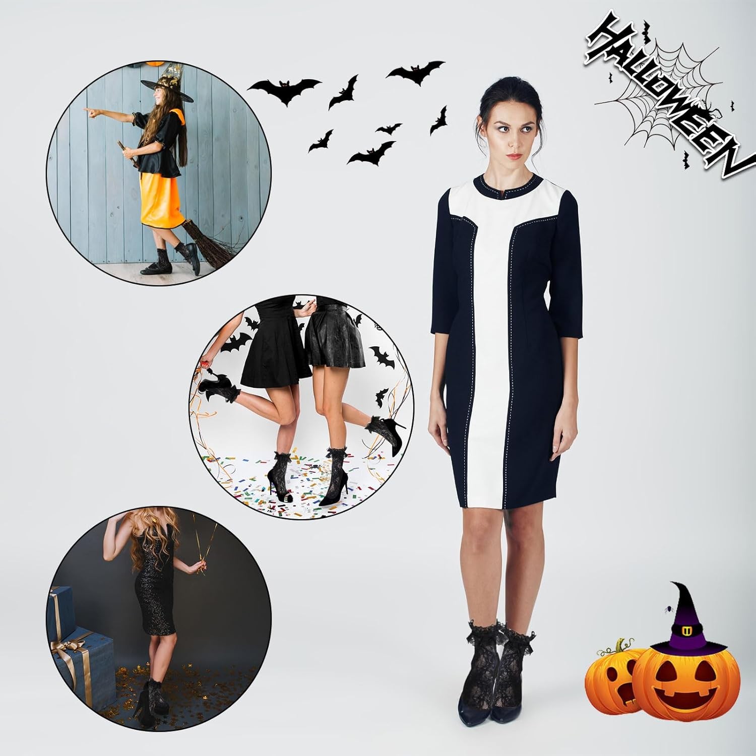 как выглядит 4 Pairs lace ruffle socks Lace Socks for Women Ankle Ruffle,White Black Mesh... фото