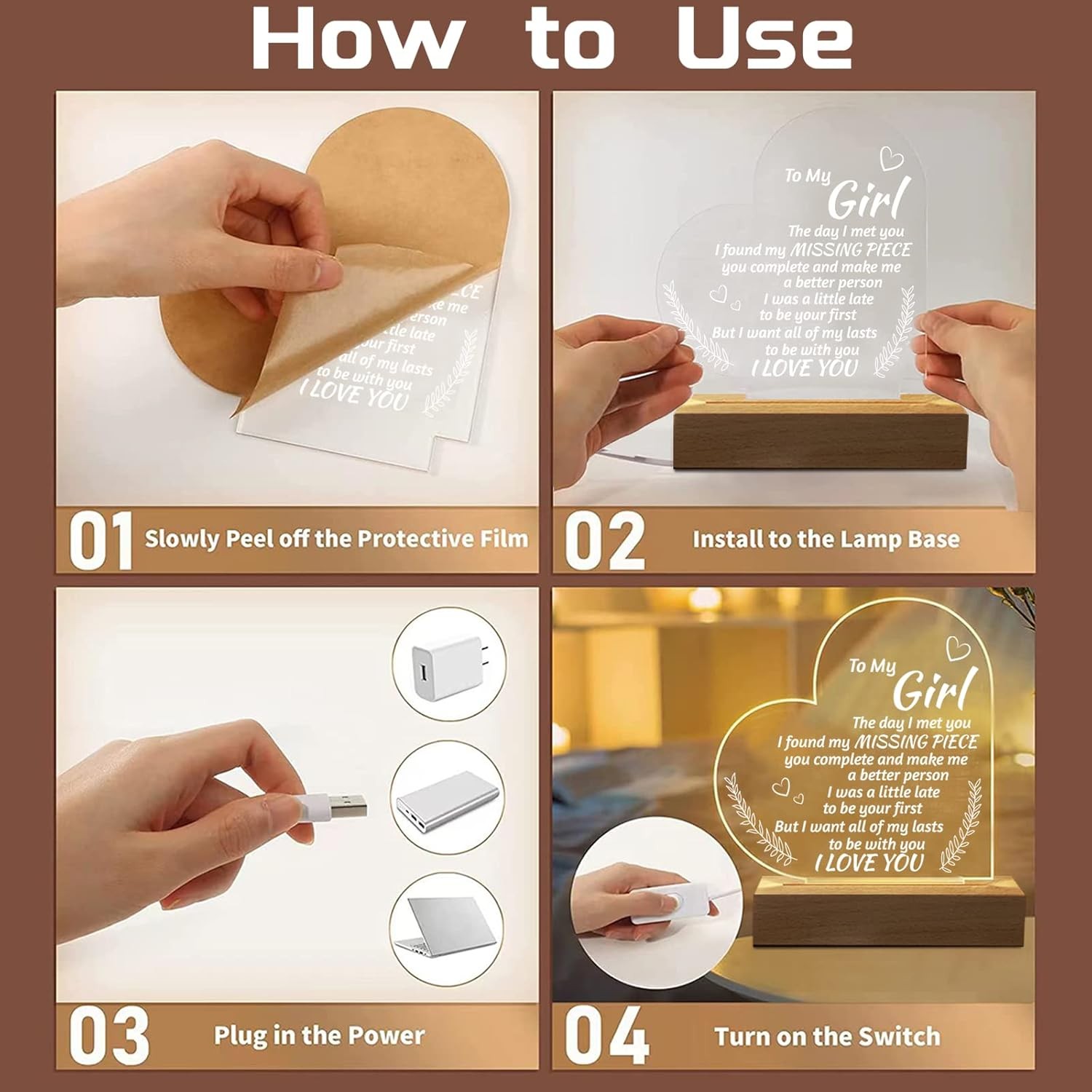 Romantic Gifts for Girlfriend, to My Girlfriend Engraved Night Light, I White