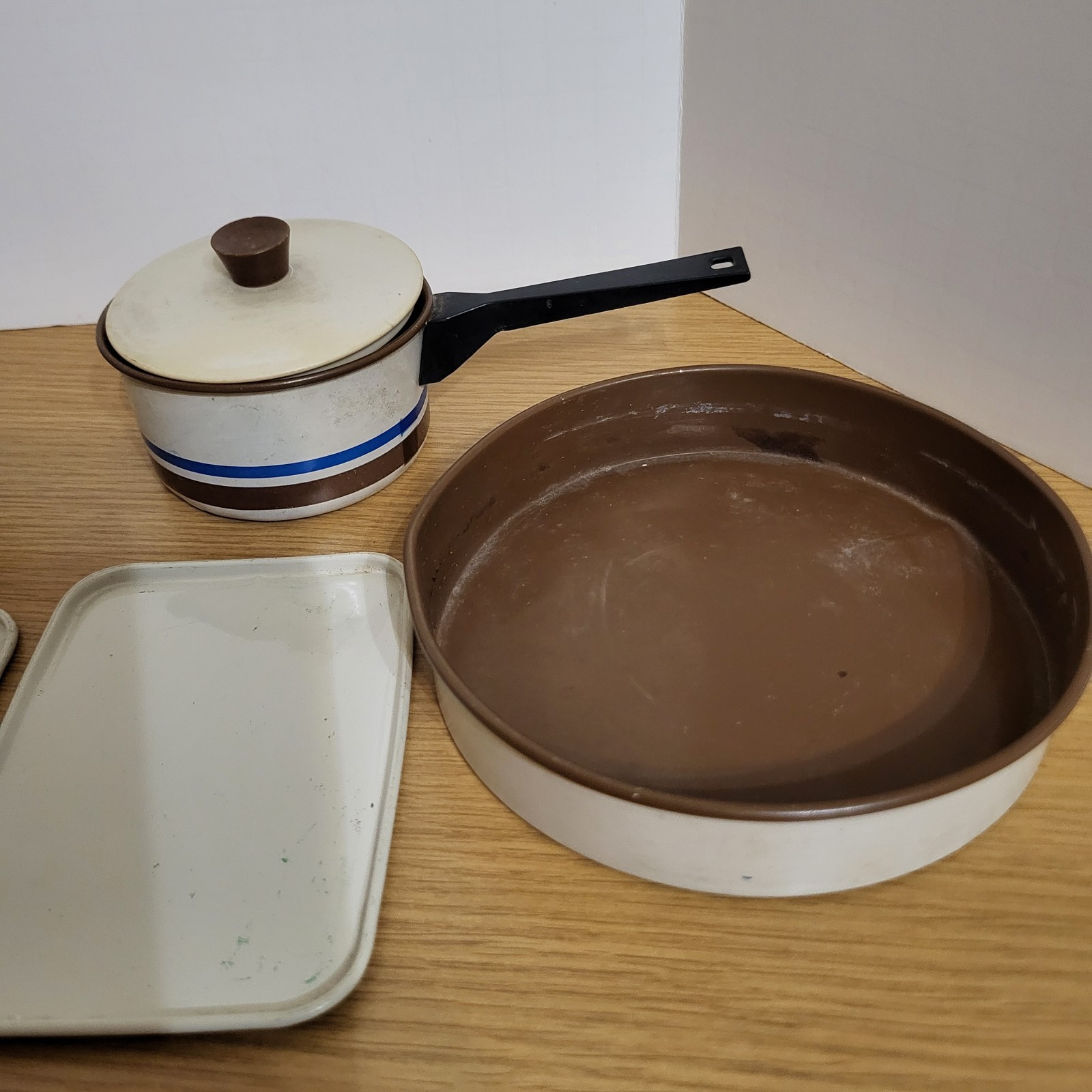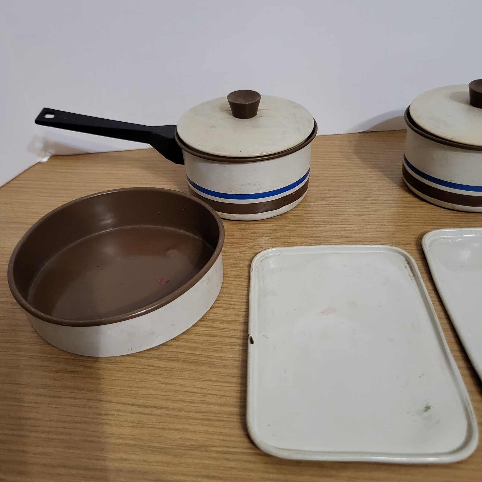 как выглядит Vintage Kids Toy Dishes Aluminum Specialty Cook Ware Pans фото
