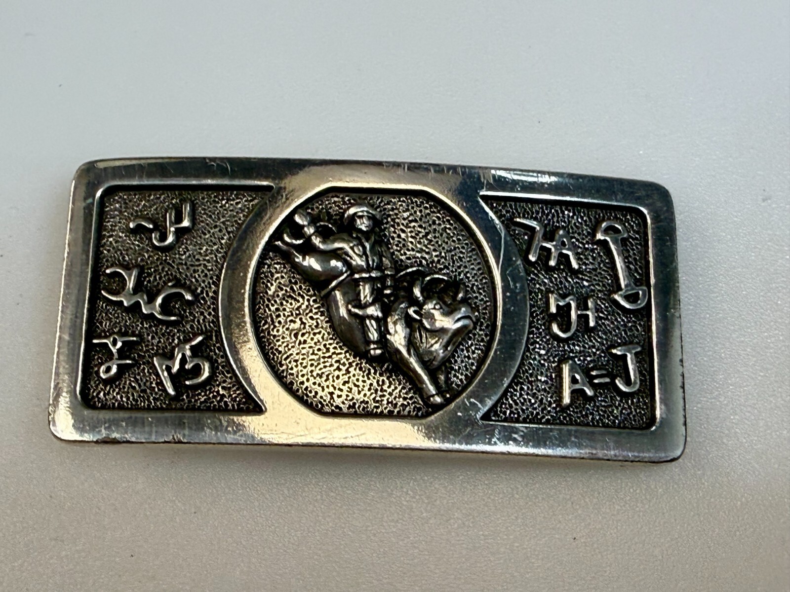 как выглядит Western Rodeo Cowboy Bull Rider Branding Symbols Silver Tone Small Belt Buckle фото