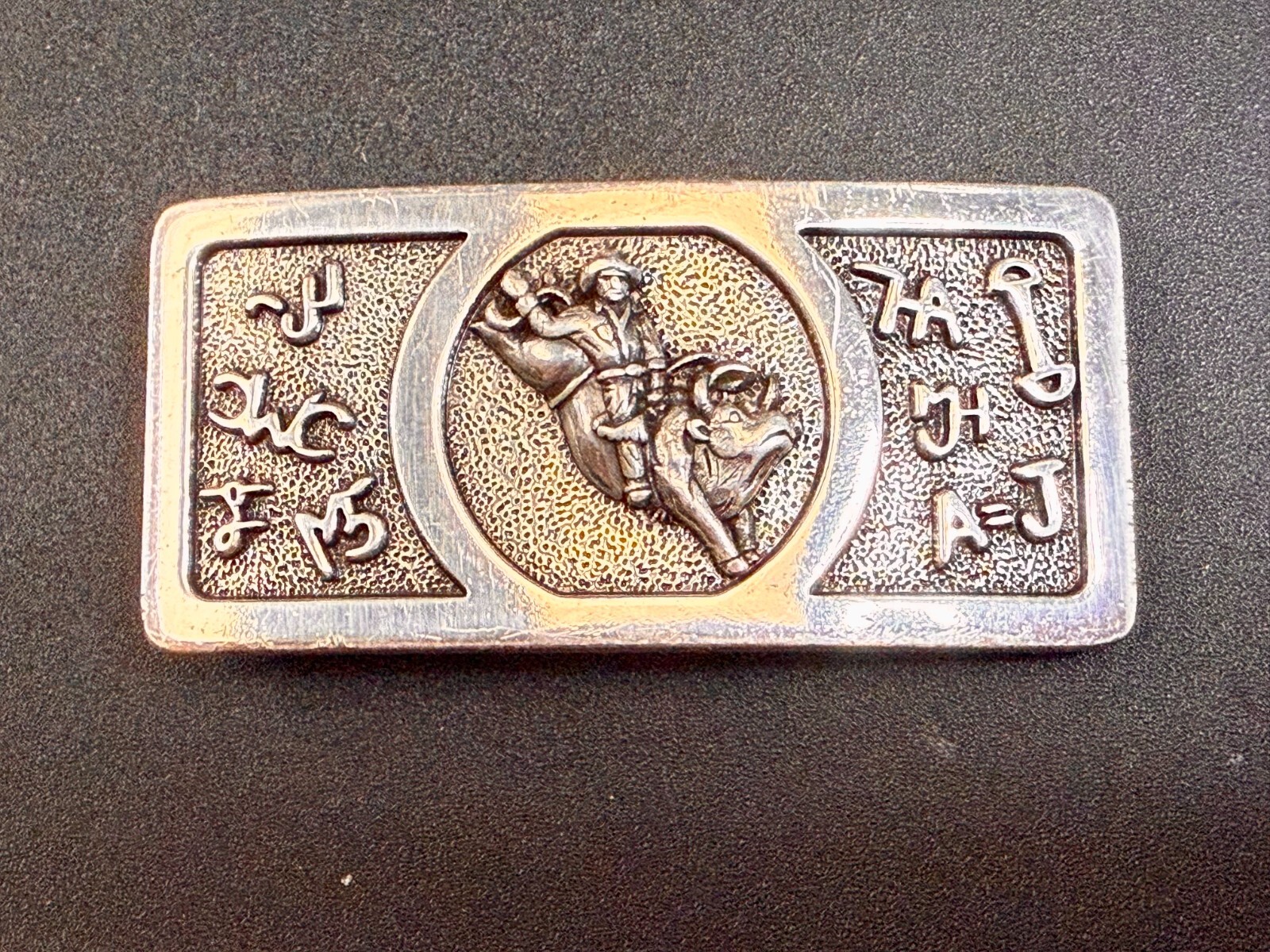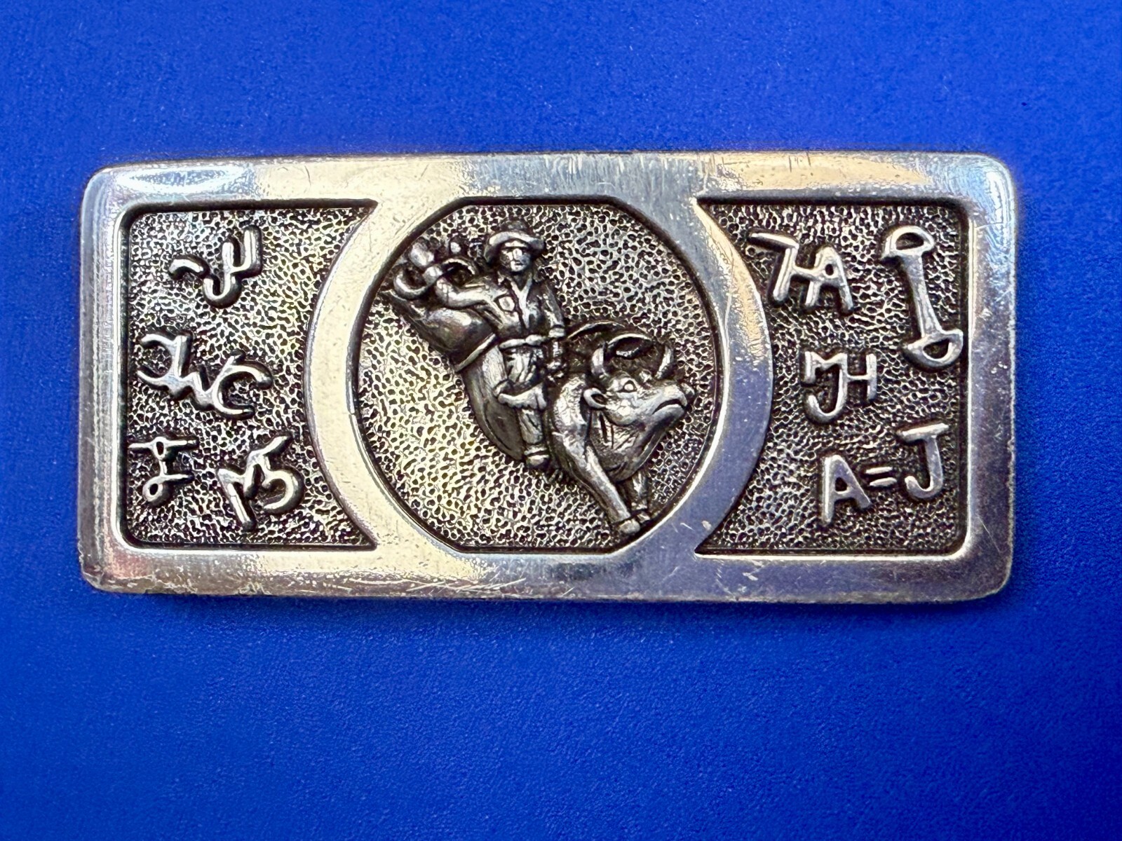 Western Rodeo Cowboy Bull Rider Branding Symbols Silver Tone Small Belt Buckle