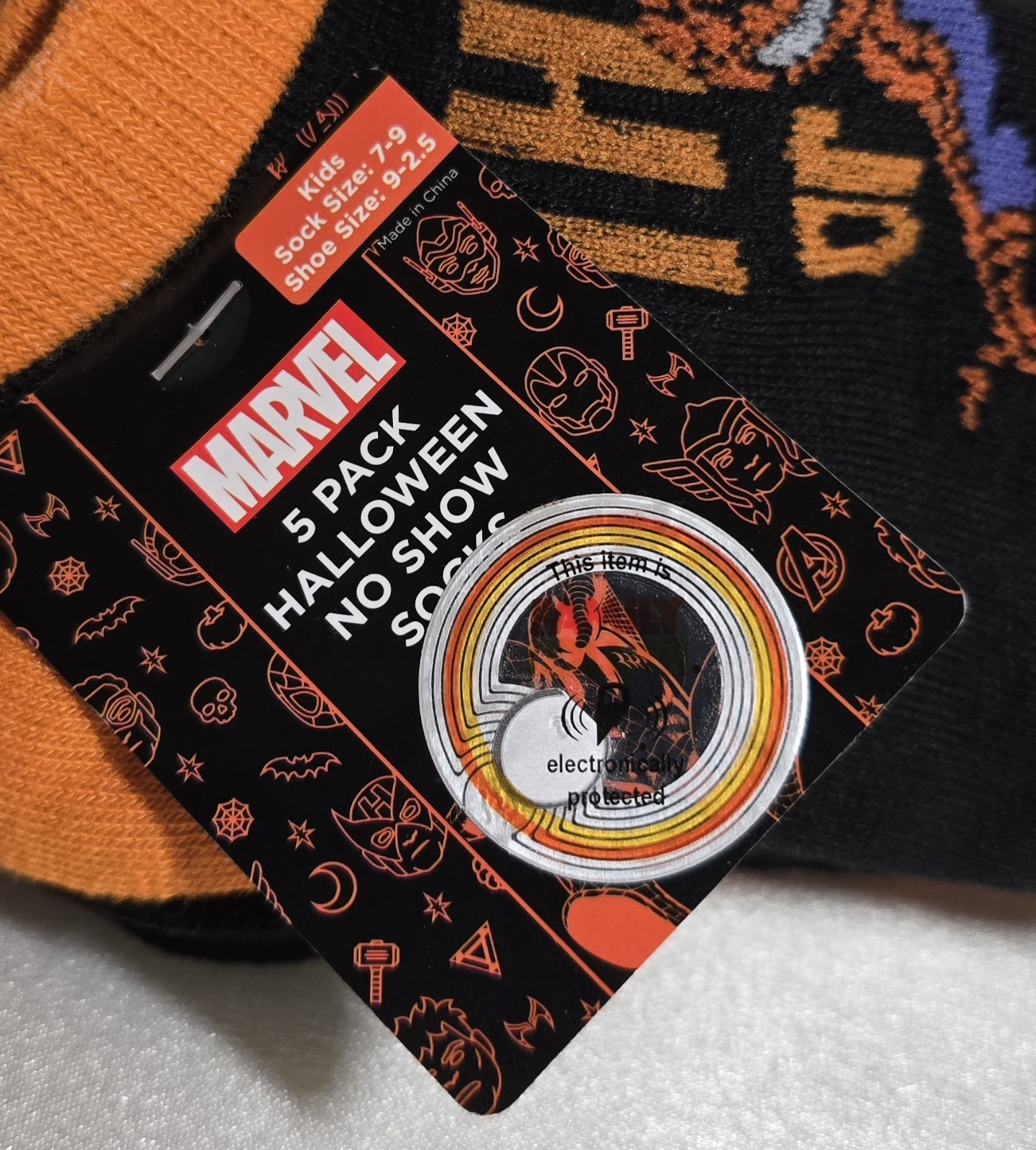 Marvel 5pk Halloween No Show Socks Kids Sock Sz 7-9