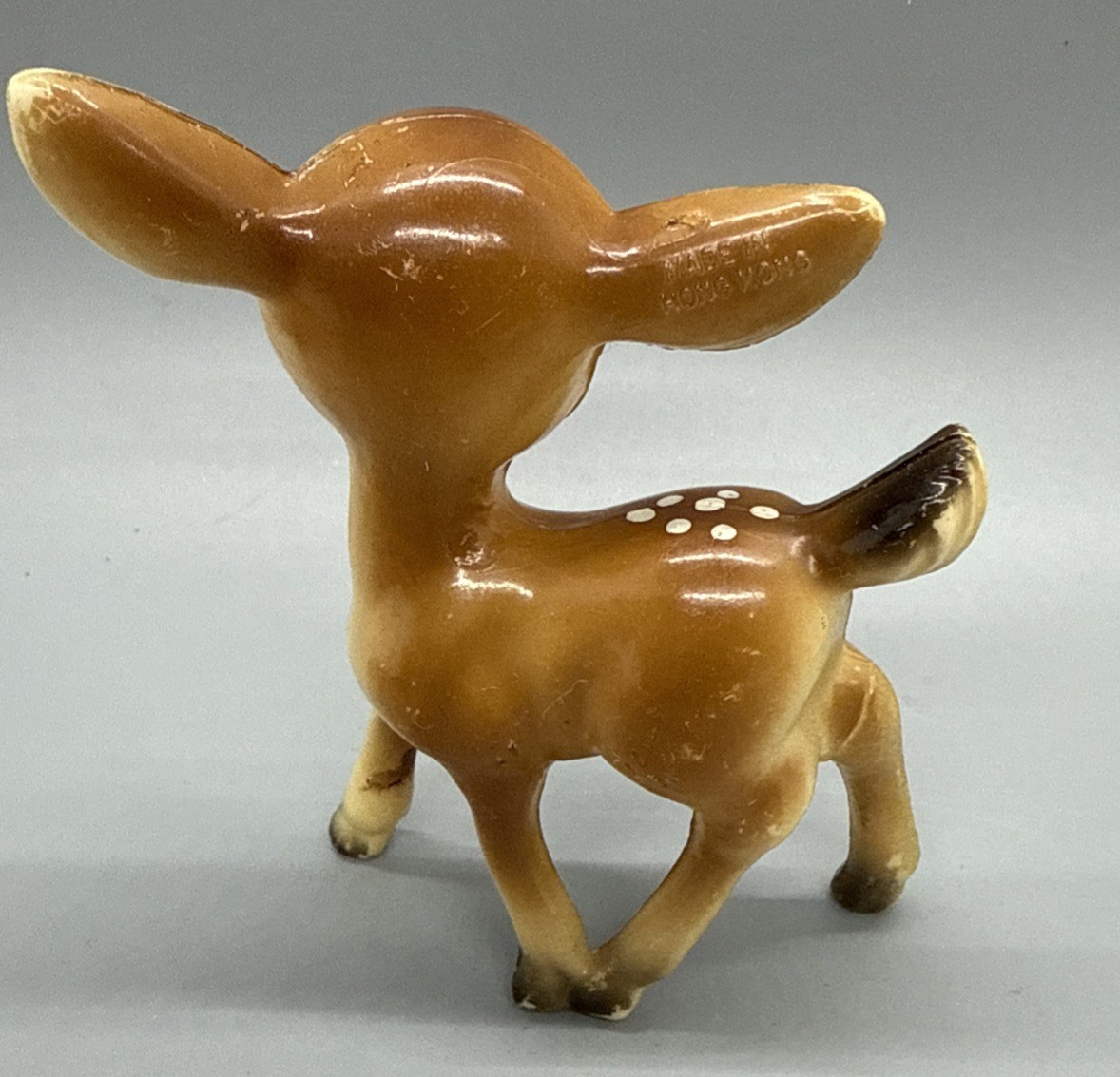 Vintage Hard Plastic Big Blue Eyed Standing Deer Fawn Figure - Kitschy Cute 3.5"