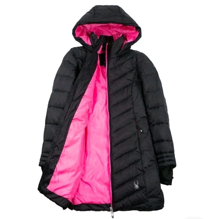 как выглядит Spyder Girl Boundless Black Winter Hooded Ski Long Puffer Jacket Coat L 14 16 фото