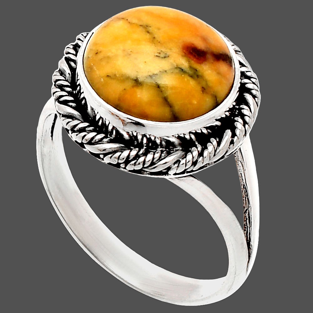 как выглядит Natural Honey Dendritic Opal 925 Sterling Silver Ring s.9 Jewelry R-1014 фото