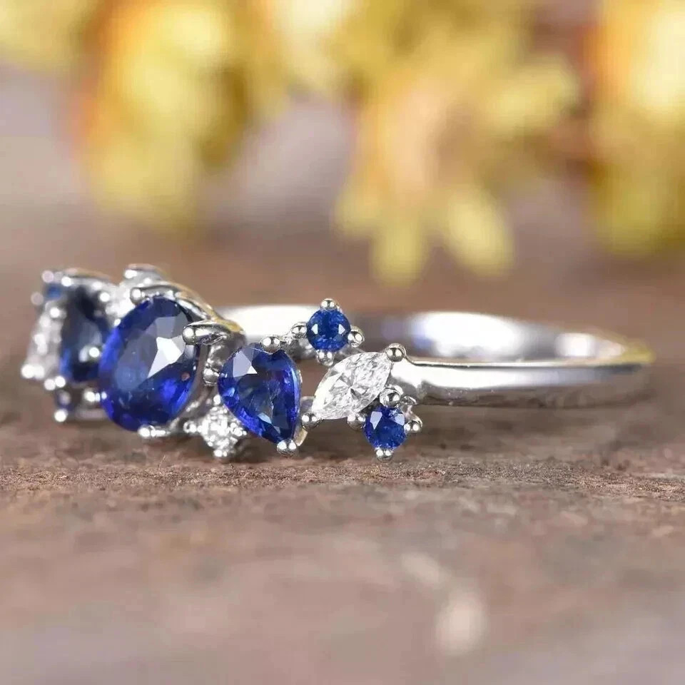 как выглядит 2Ct Oval Cut Lab Created Blue Sapphire 14K White Gold Plated Women Wedding Ring фото
