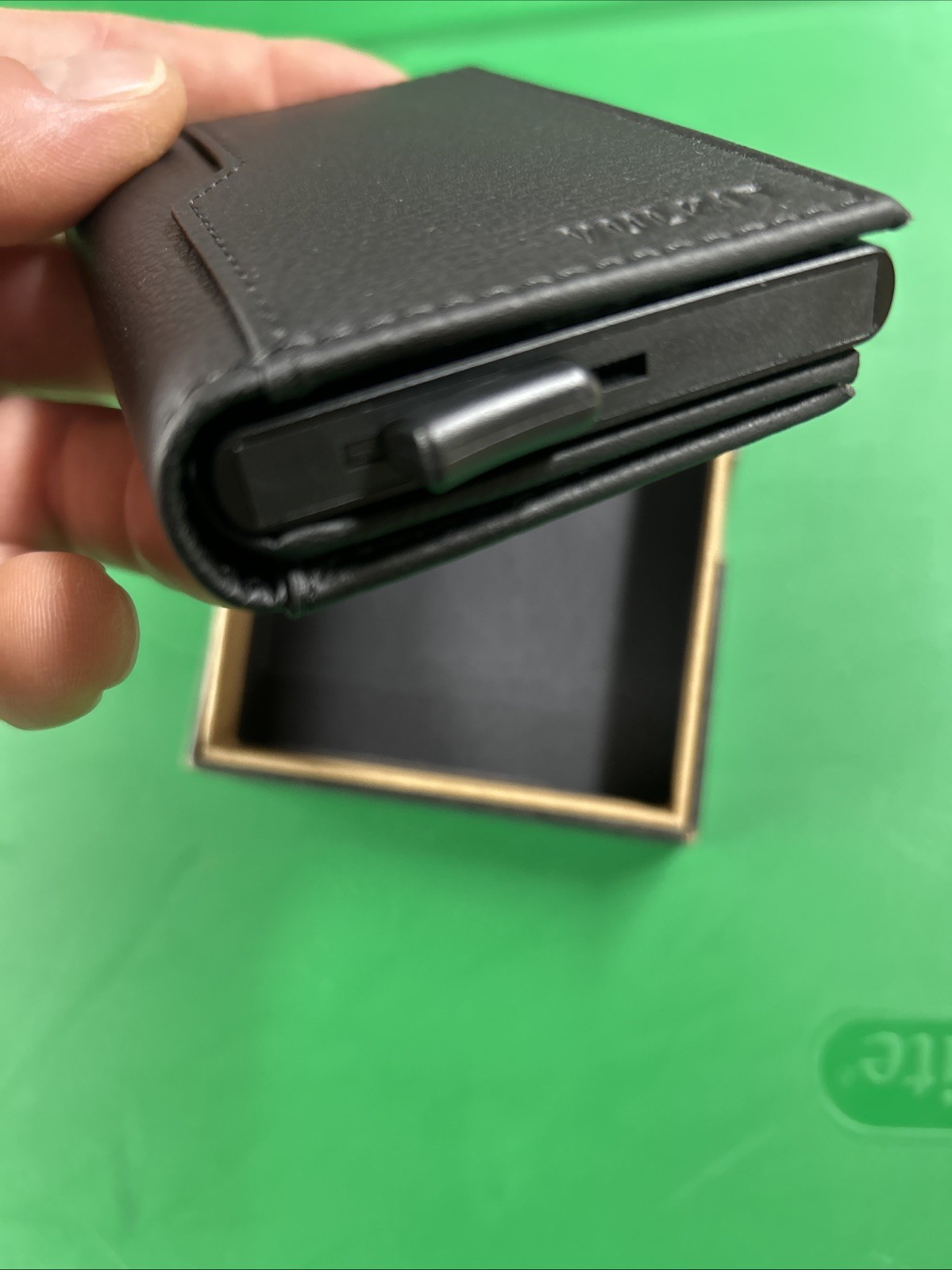 как выглядит Credit Card Holder RFID Blocking Leather Automatic Pop up Wallet Magnetic Wallet фото