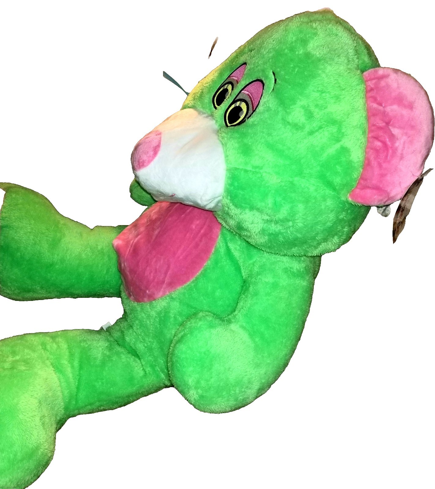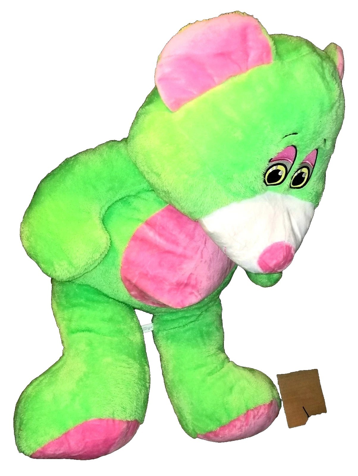 • Belly Bear. X large. 31 Inch. Green And Pink. Soft Stuffed Plush Animal.