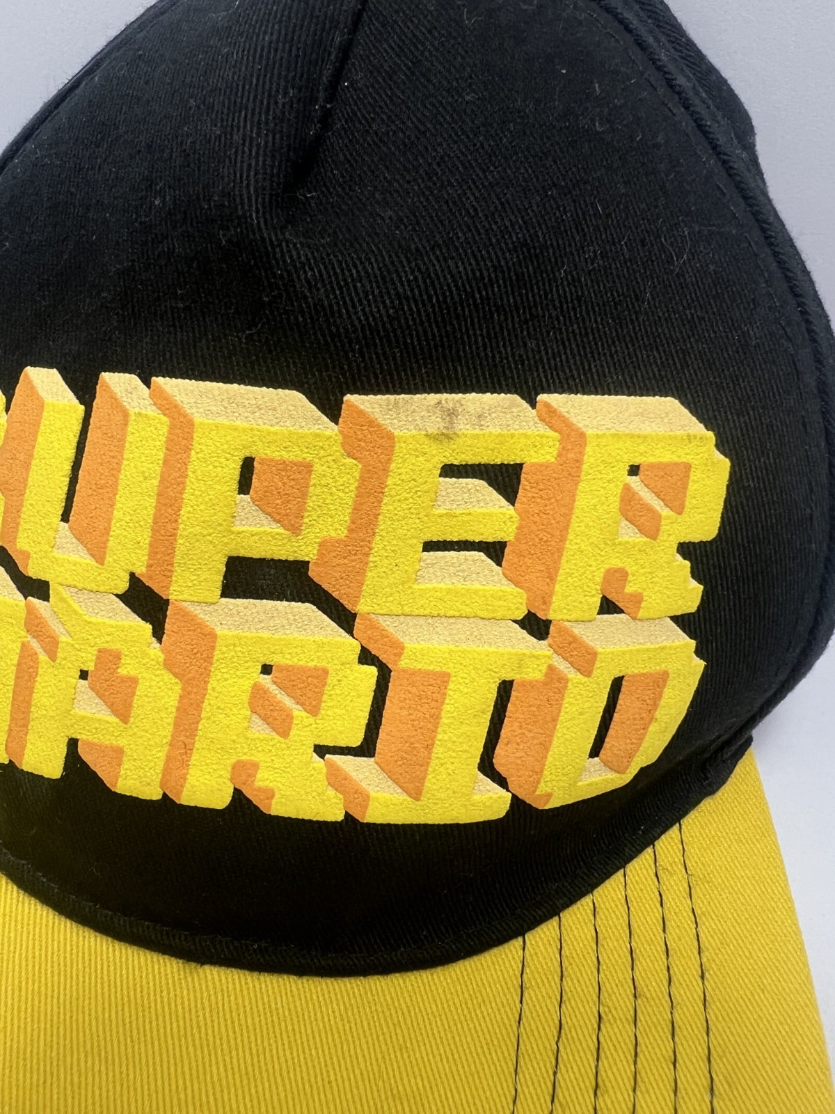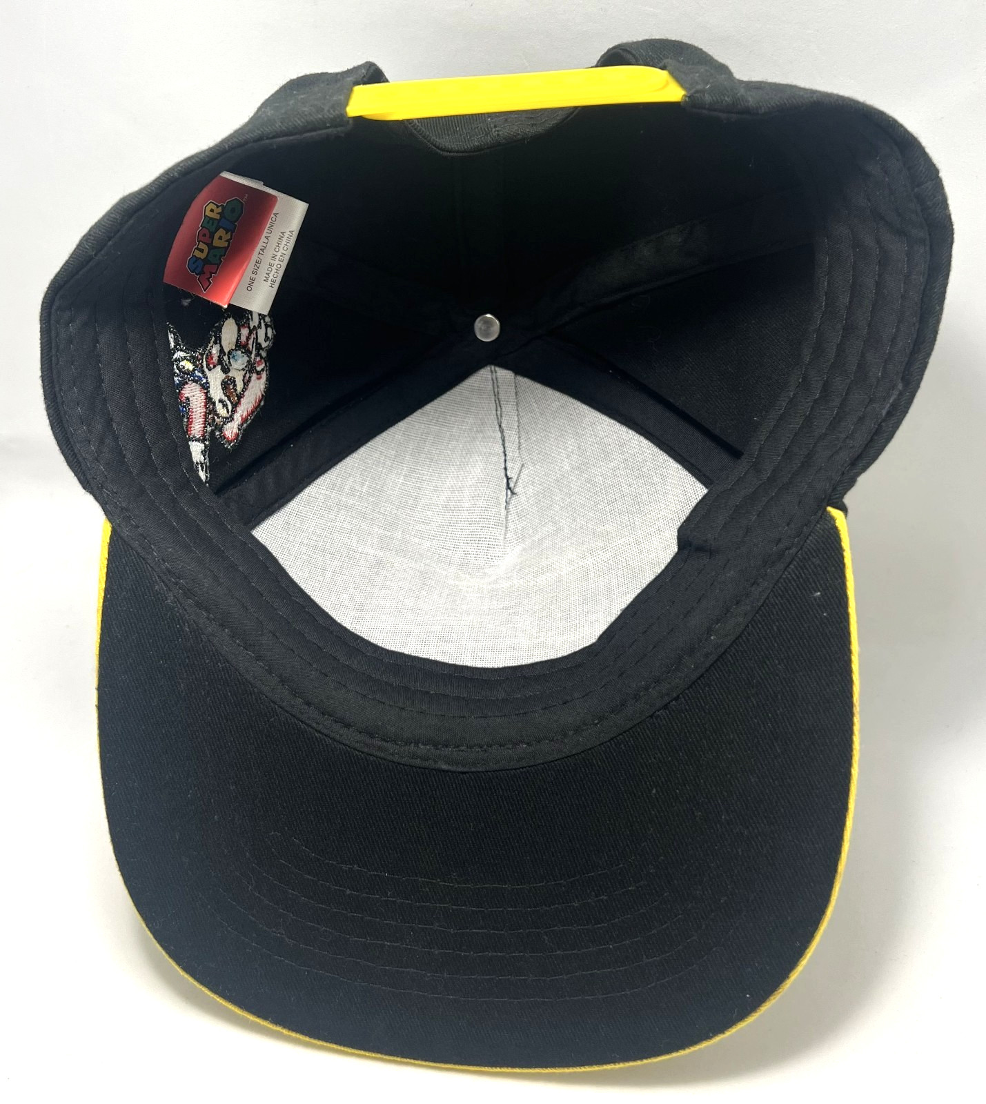 Super Mario Hat Cap Snap Back Mens One Size Black Yellow Nintendo Embroidered