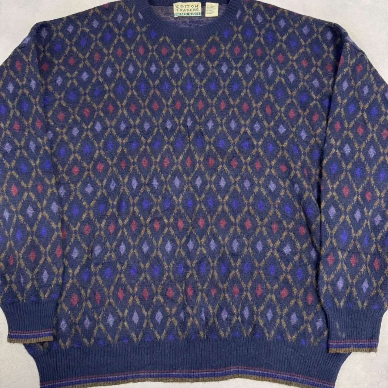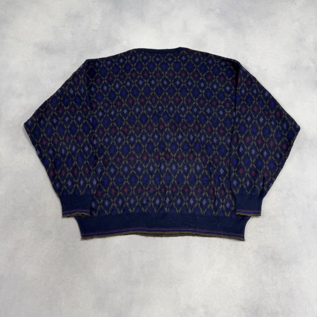 как выглядит Vintage Knitted Jumper Abstract Patterned Grandad Knit Sweater Men