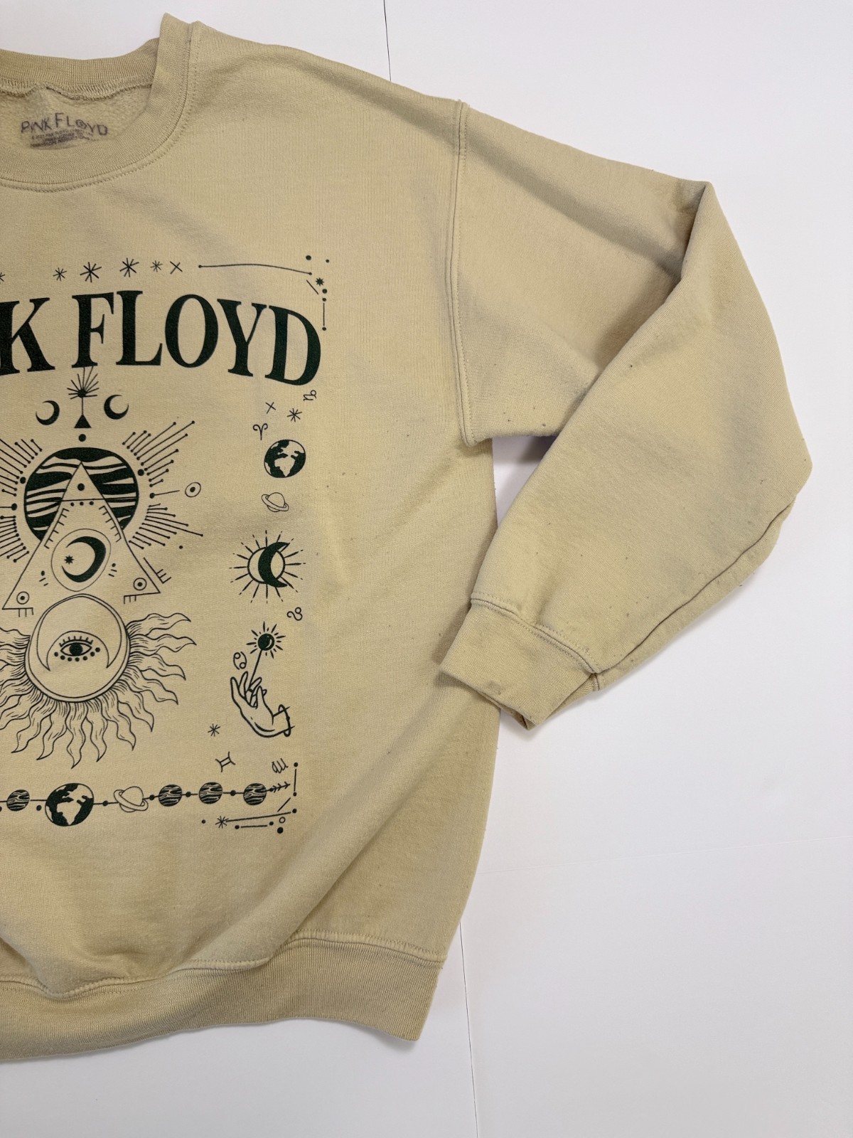Pink Floyd Sweatshirt Beige Graphic Crewneck Medium Sun Moon Eye Vintage Style