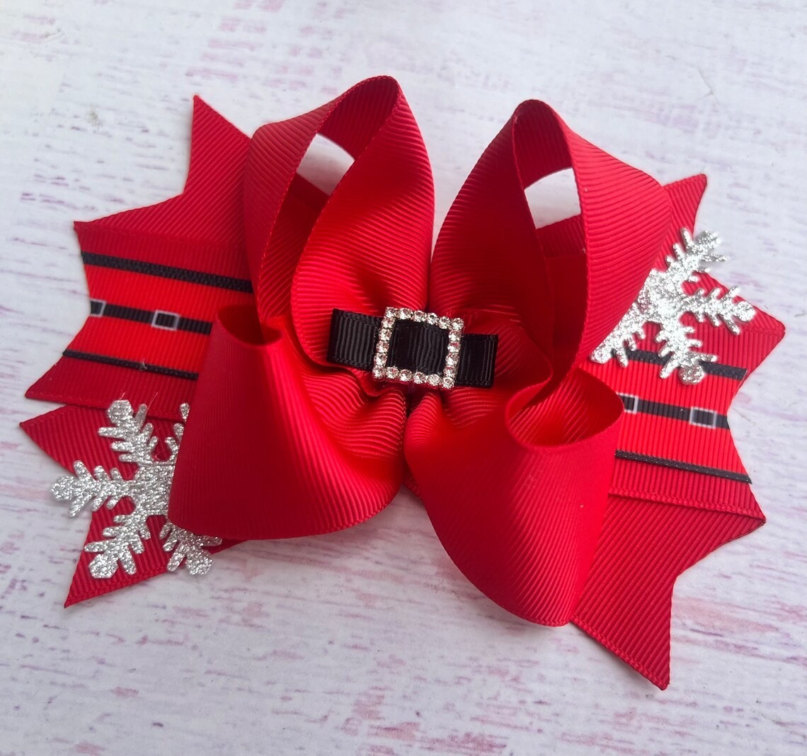 как выглядит 5.5 Santa Christmas Hair Bow Holiday Accessory for Girls фото