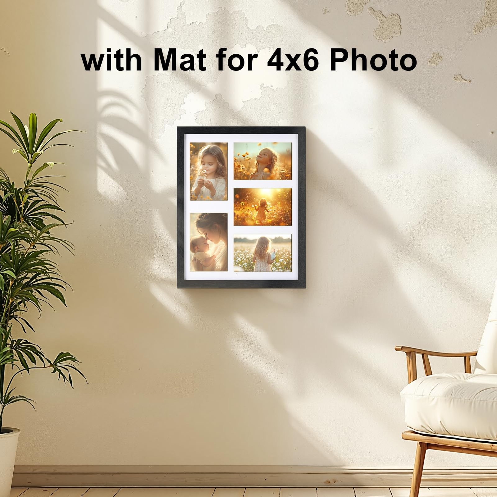 как выглядит 4x6 Collage Picture Frame 5 Openings, 4 Pack Black Wall Frame with Mat for 4x... фото