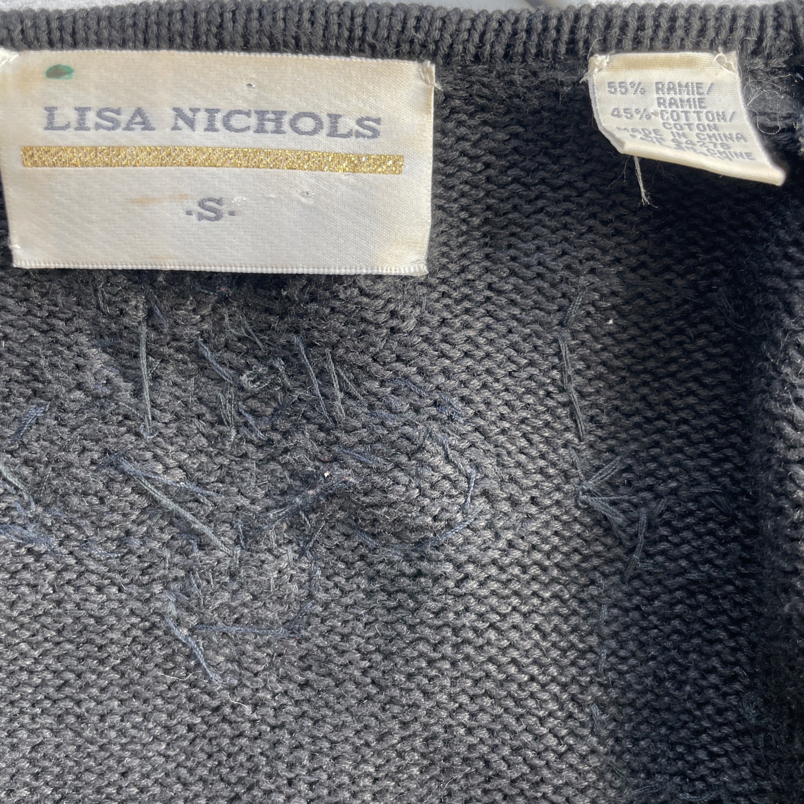 Lisa Nichols Vintage Black Beaded Cardigan Sweater Size Small