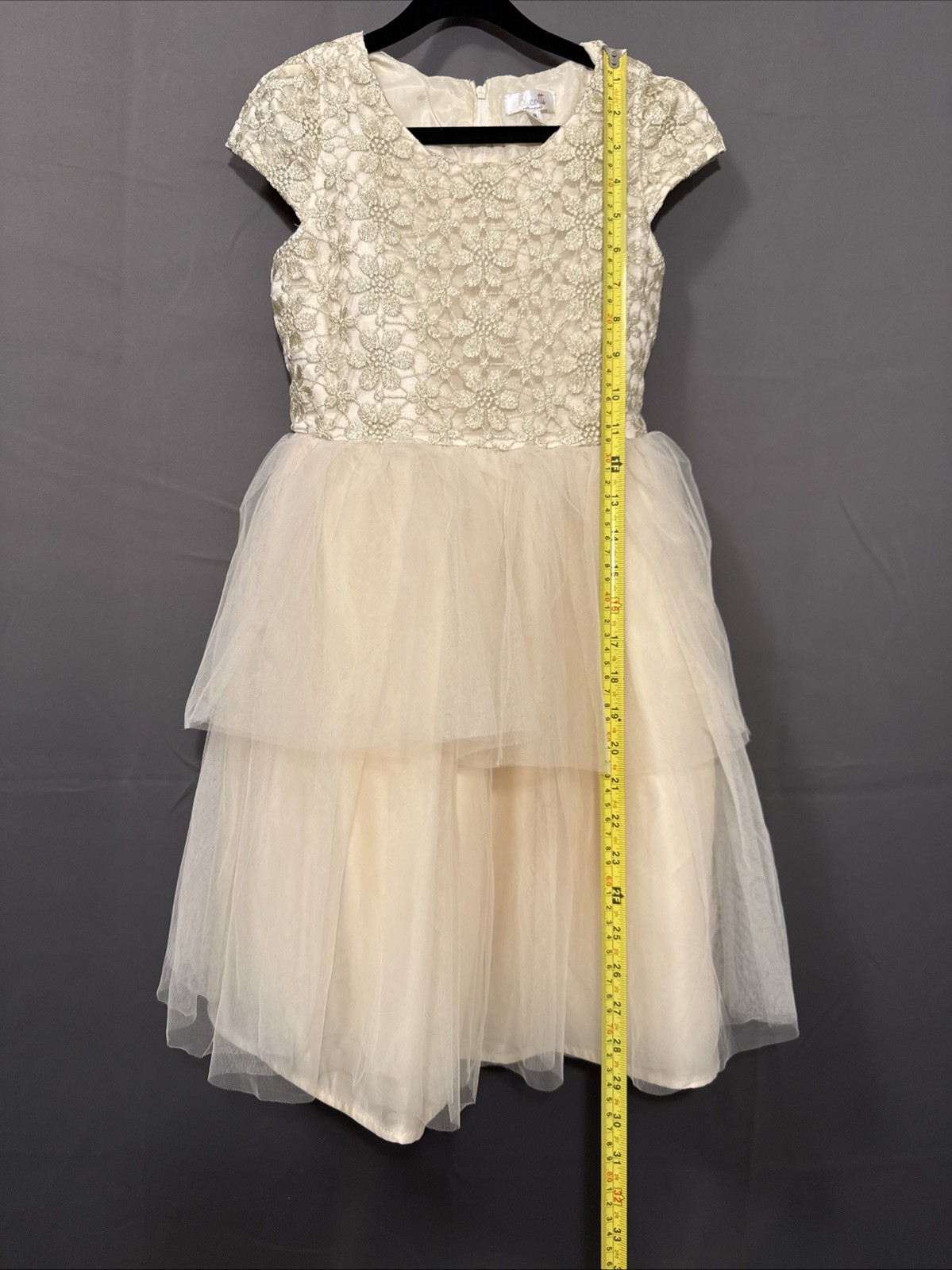 как выглядит Golden Lace Holiday Formal Dress For Girl Size 8 With Layered Tulle Skirt фото