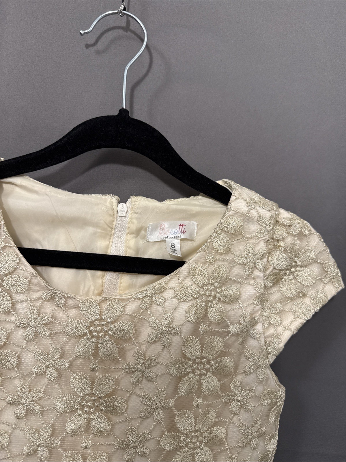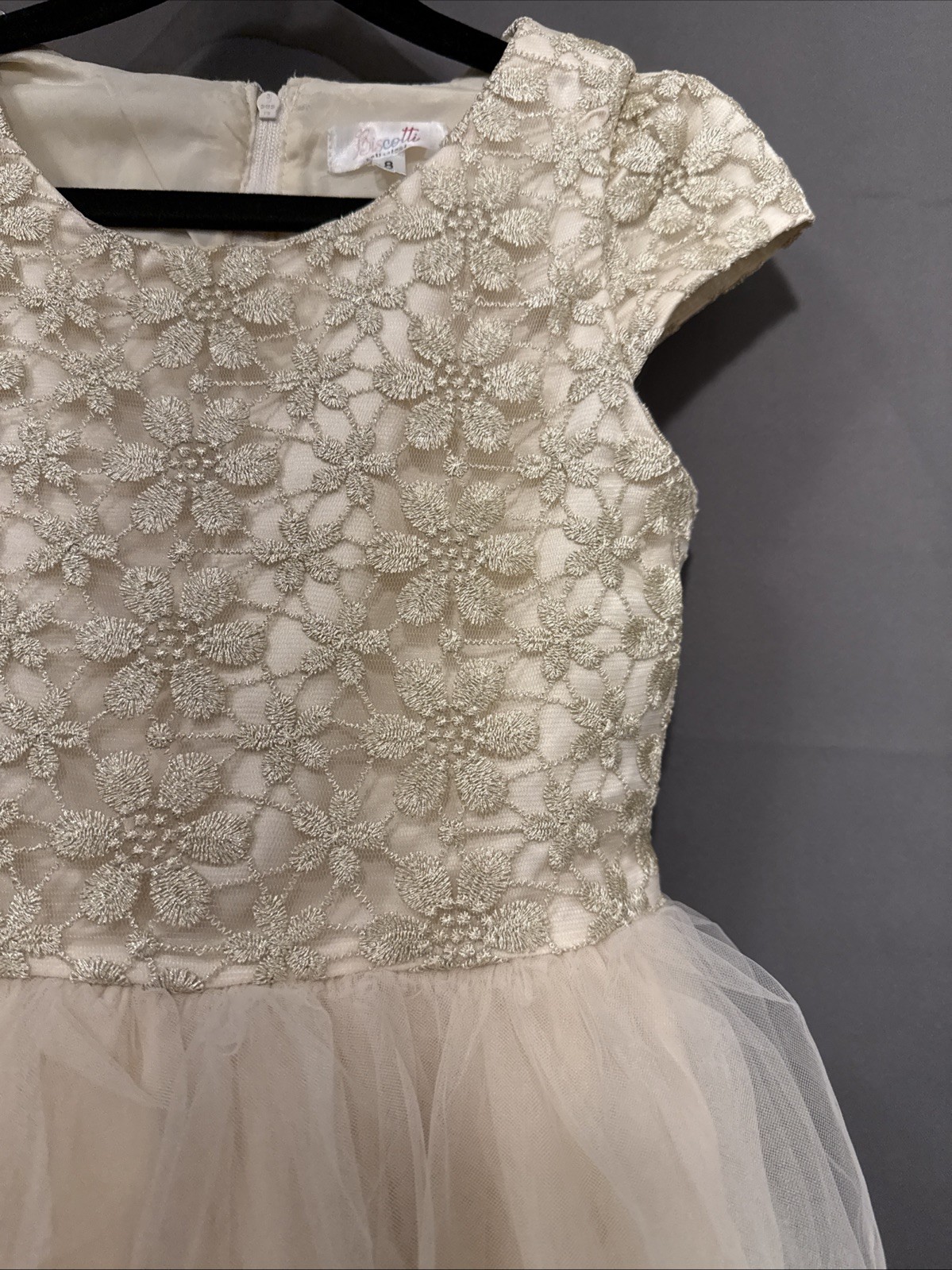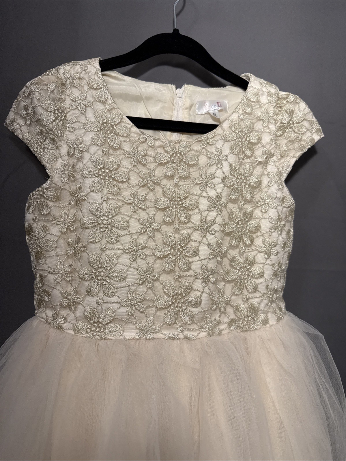 Golden Lace Holiday Formal Dress For Girl Size 8 With Layered Tulle Skirt