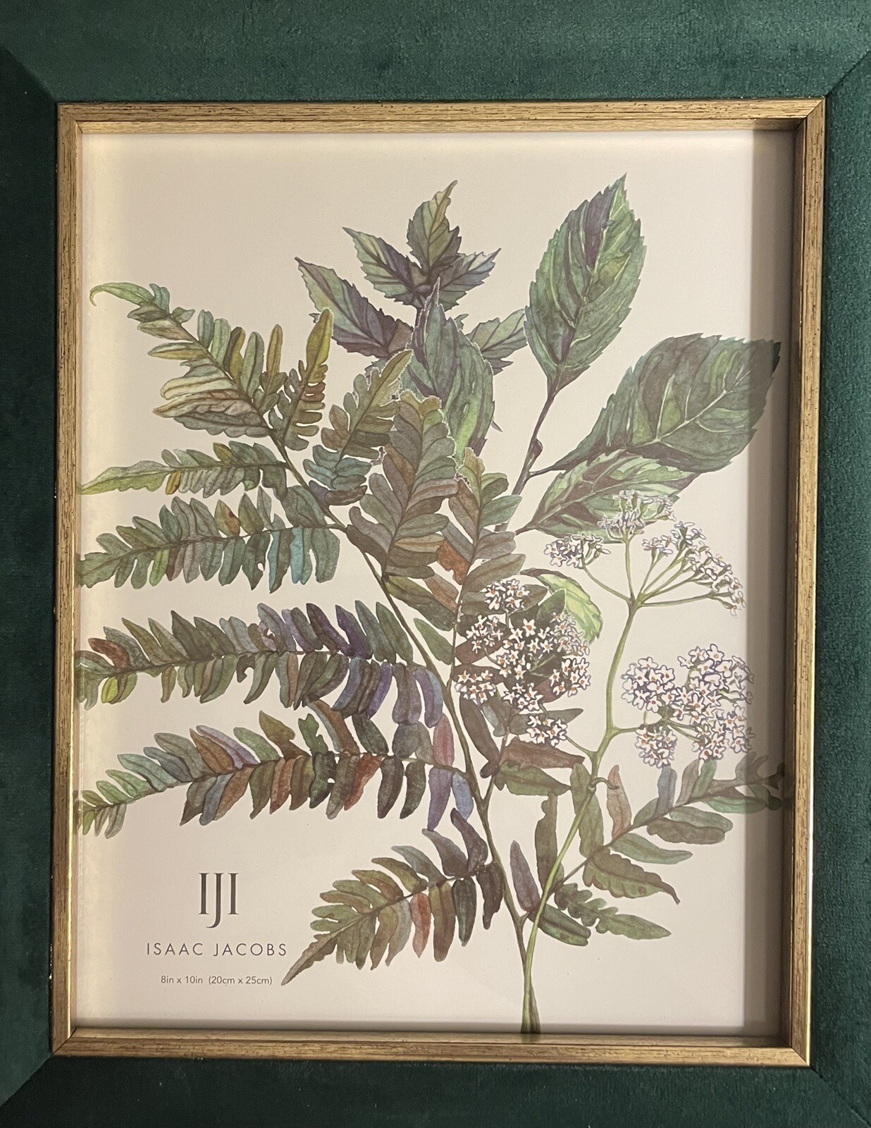 Isaac Jacobs GREEN Velvet/Metallic Gold Double Border Frame 8x10 Great Gift New