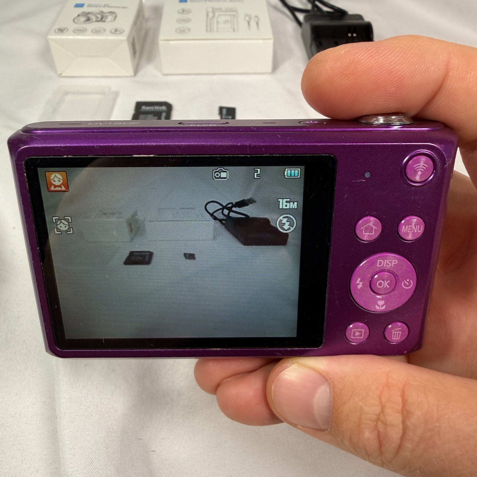 VIDEO OF IT WORKING -Samsung DualView DV150F Camera w 32GB Card NEW BATT/CHAR