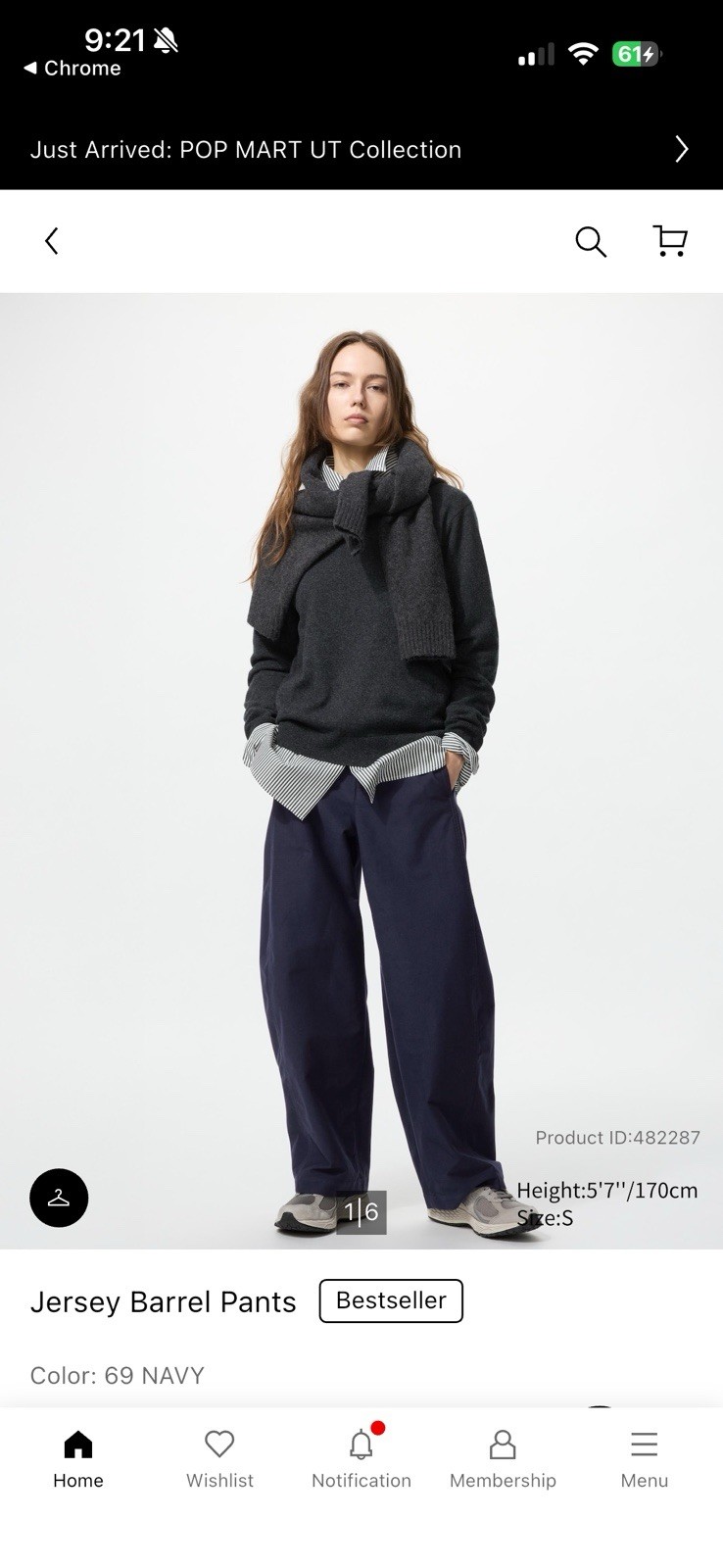 как выглядит UNIQLO Jersey Barrel Pants Navy NEW Large фото