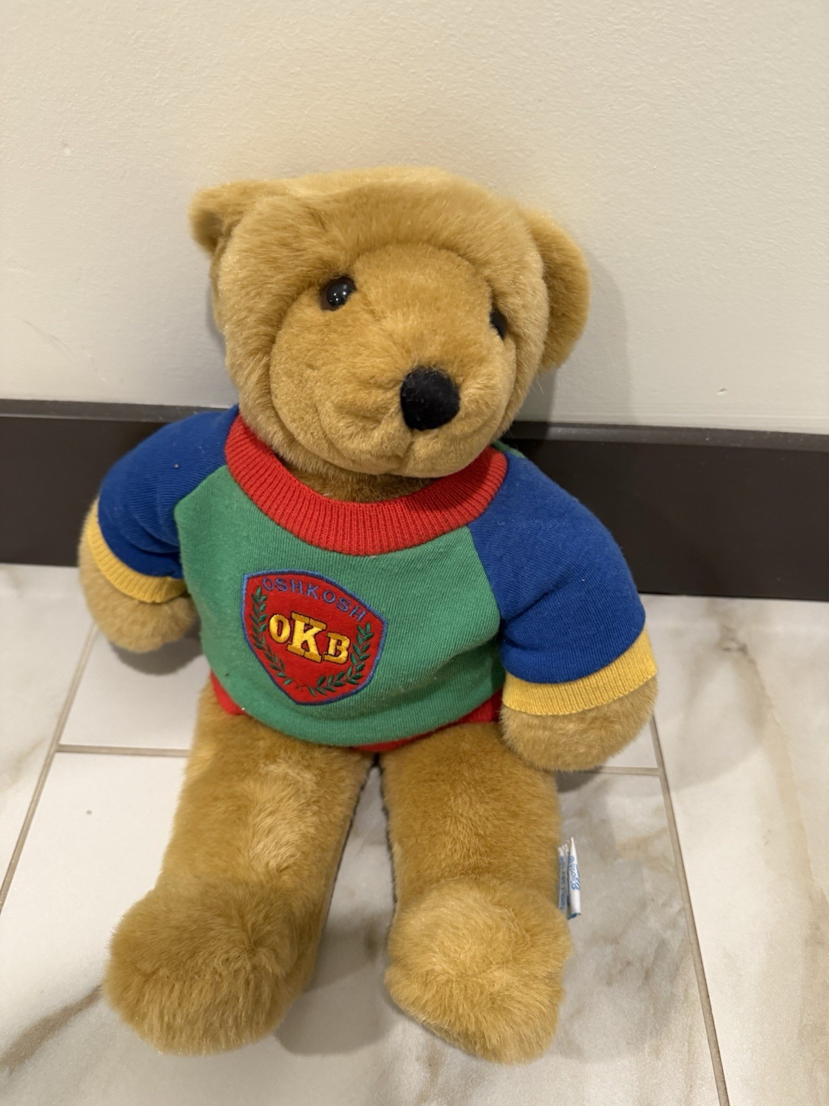 OshKosh B'gosh Eden Toys 16 Teddy Bear Plush OKB Color Block Sweatshirt Vintage