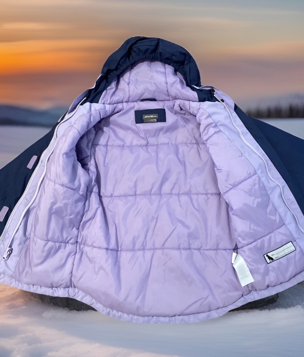 как выглядит Eddie Bauer Girls 3 In 1 Blue/Lavender Ski Jacket With Zip In Quilted Liner, 7/8 фото