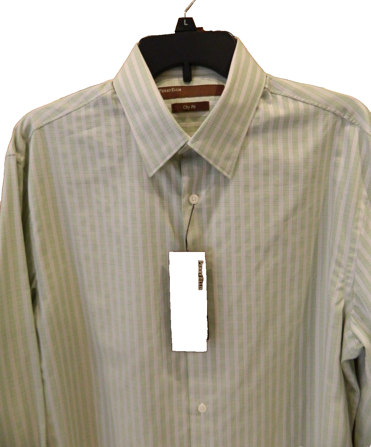 Perry Ellis Mens Large Green Long Sleeve Button Up Dress Shirt City Fit NEW NWT