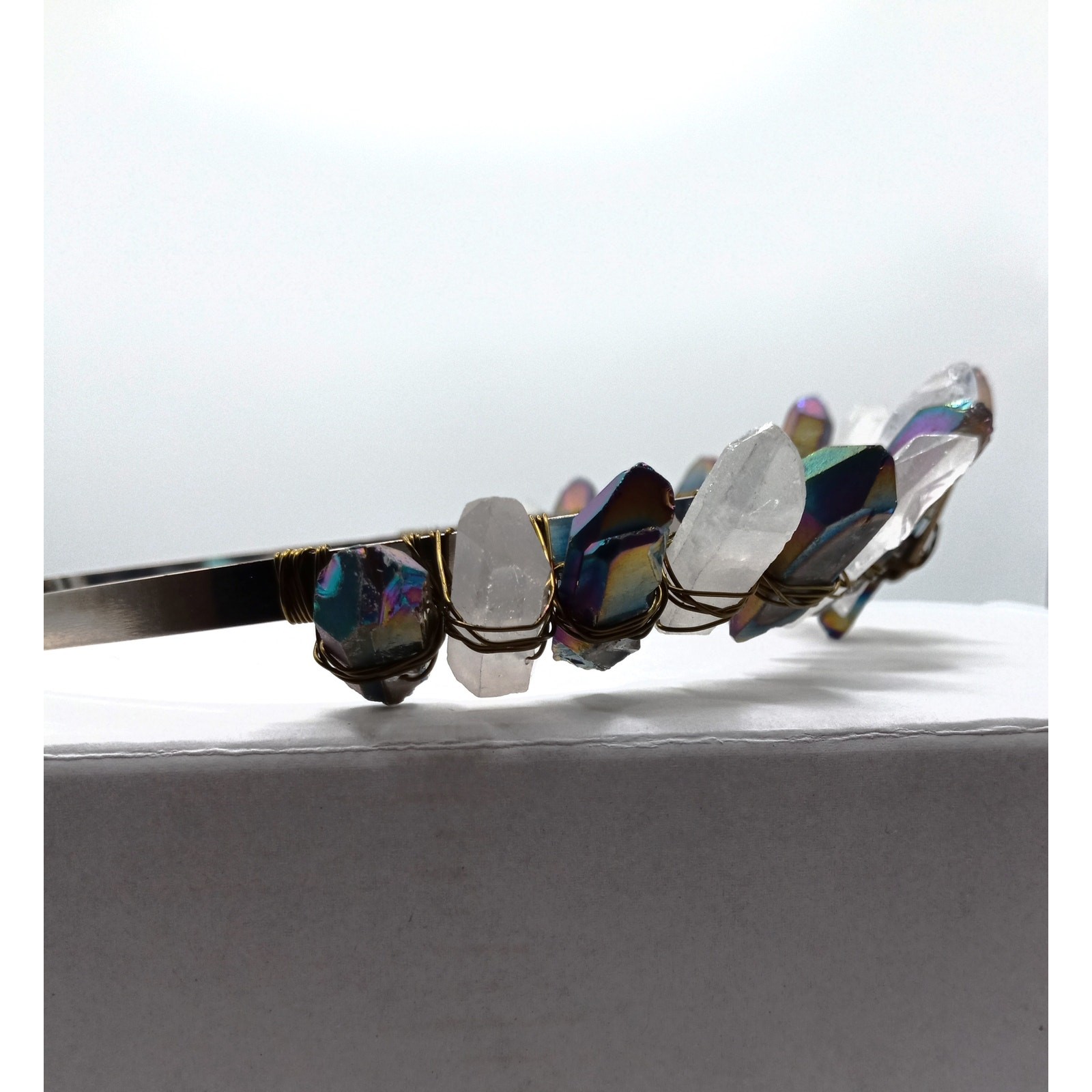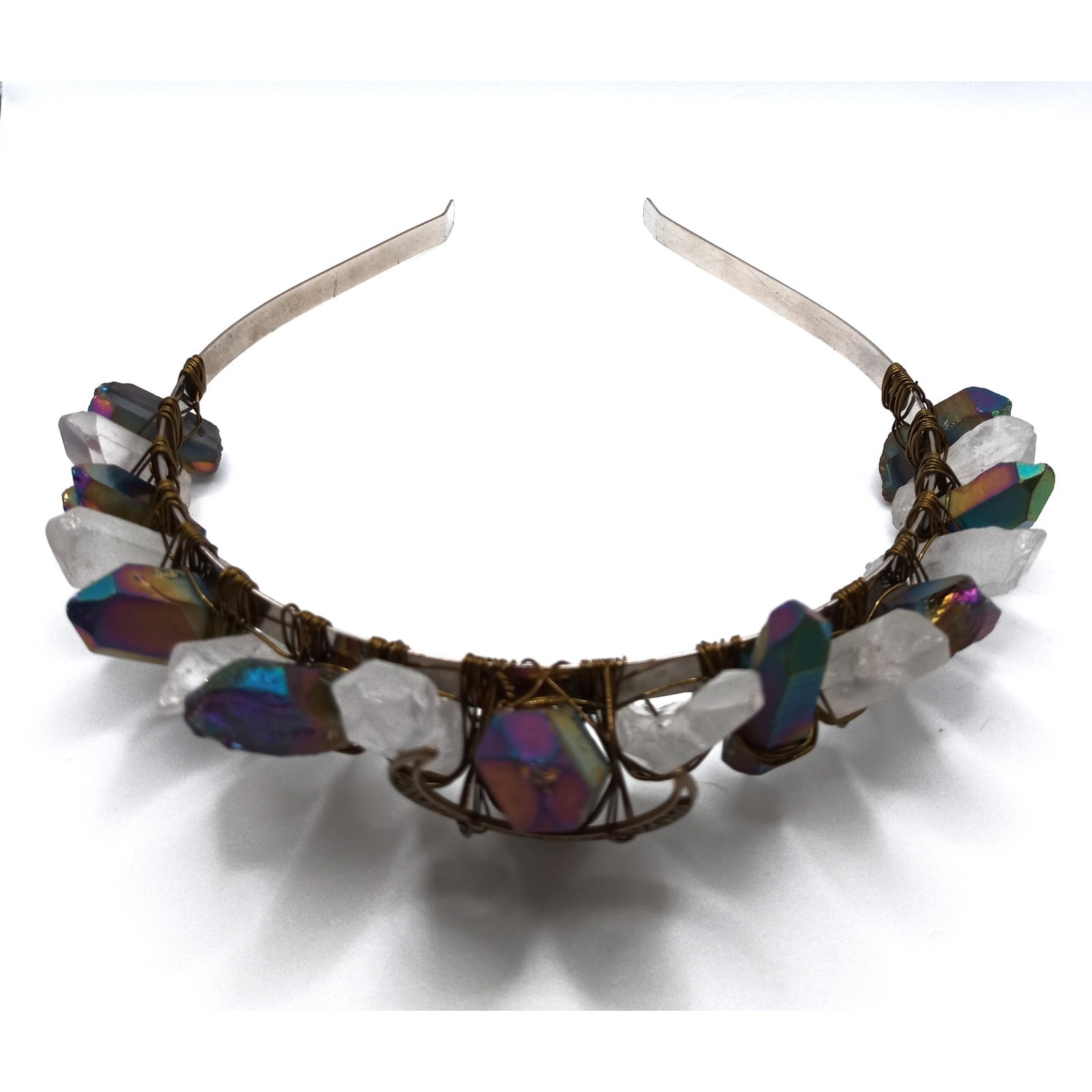 Iridescent Quartz Crystal Tiara Headband Electroplated Stone Crown