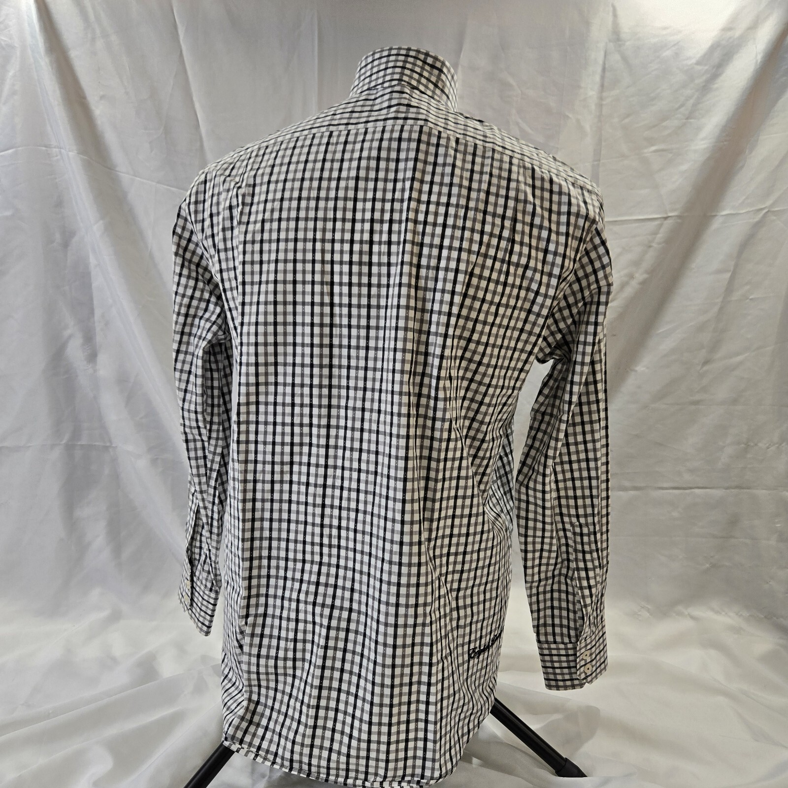 English Laundry Men Sz 16/34-35 Check Cotton Flip Cuffs Long Sleeve Dress Shirt