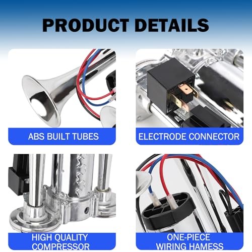 12V 600DB Air Horn Super Loud Train Horn for Truck, Dual Trumpets Kit Silvery