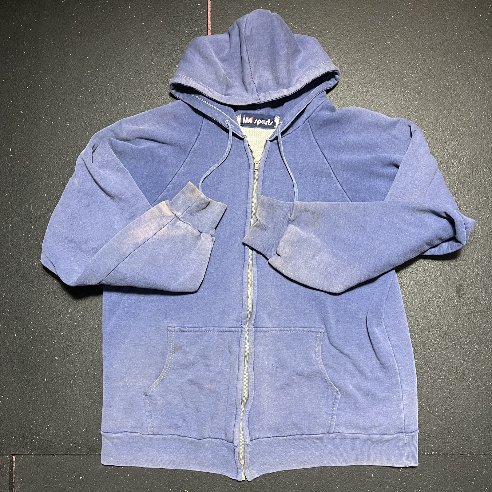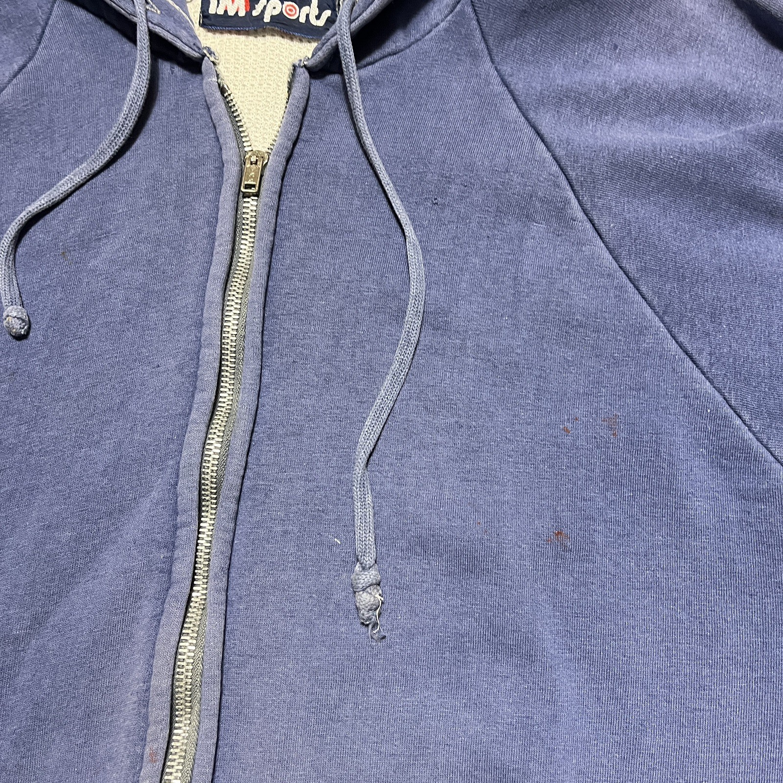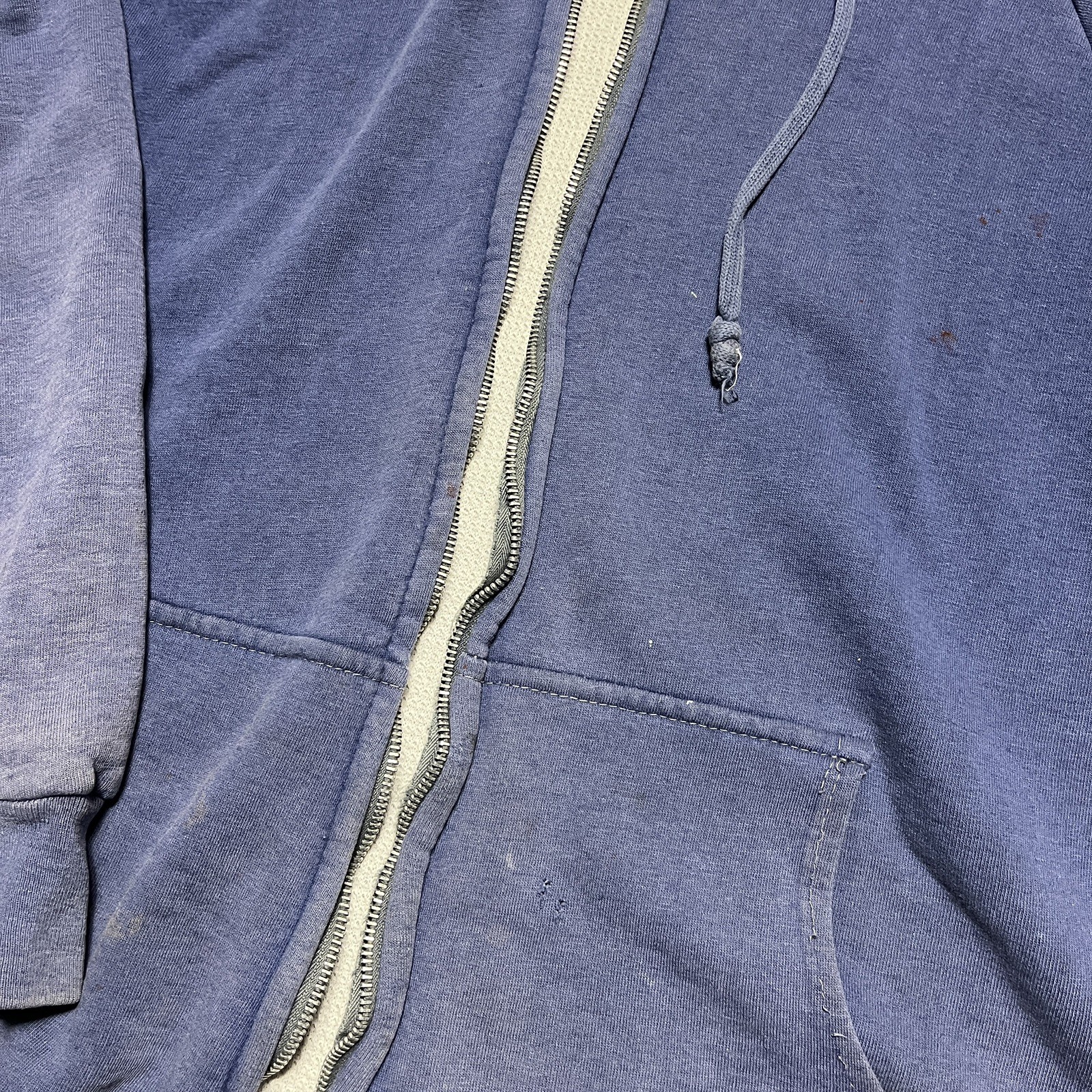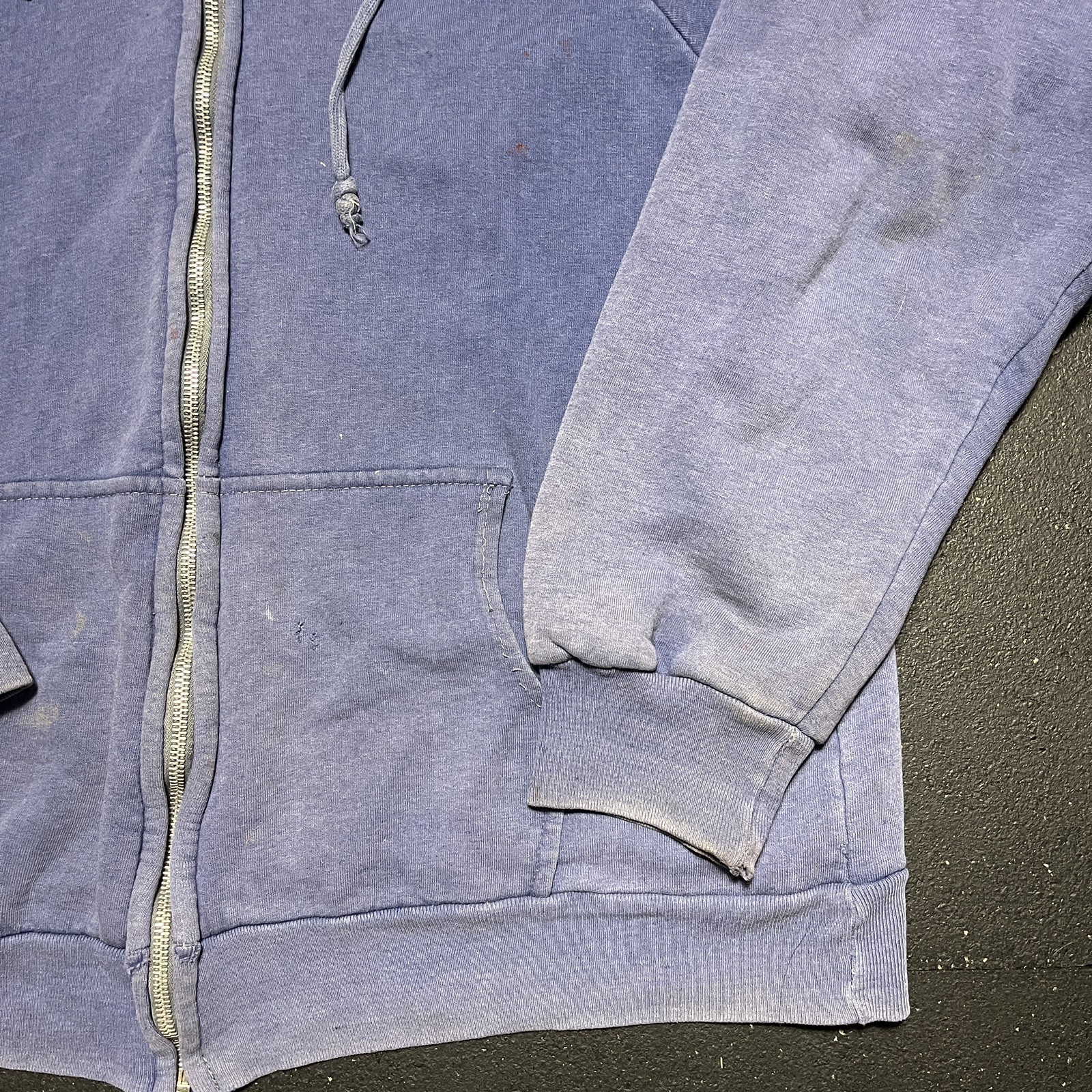 как выглядит 1980s 1990s Vintage Sweatshirt ZipUp Hoodie Blue Sun Faded Distressed ThickLined фото