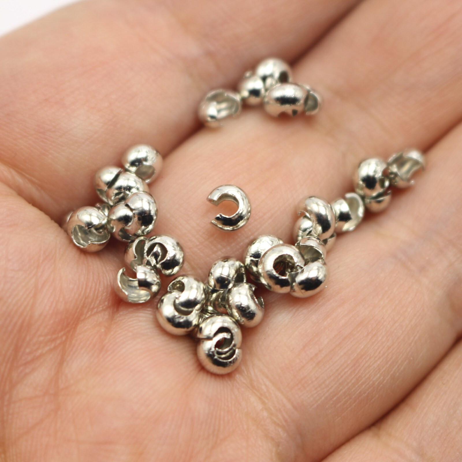 200 Pcs Dull Silver Tone Crimp Beads Covers 4mm Jewelry Making Craft DIY