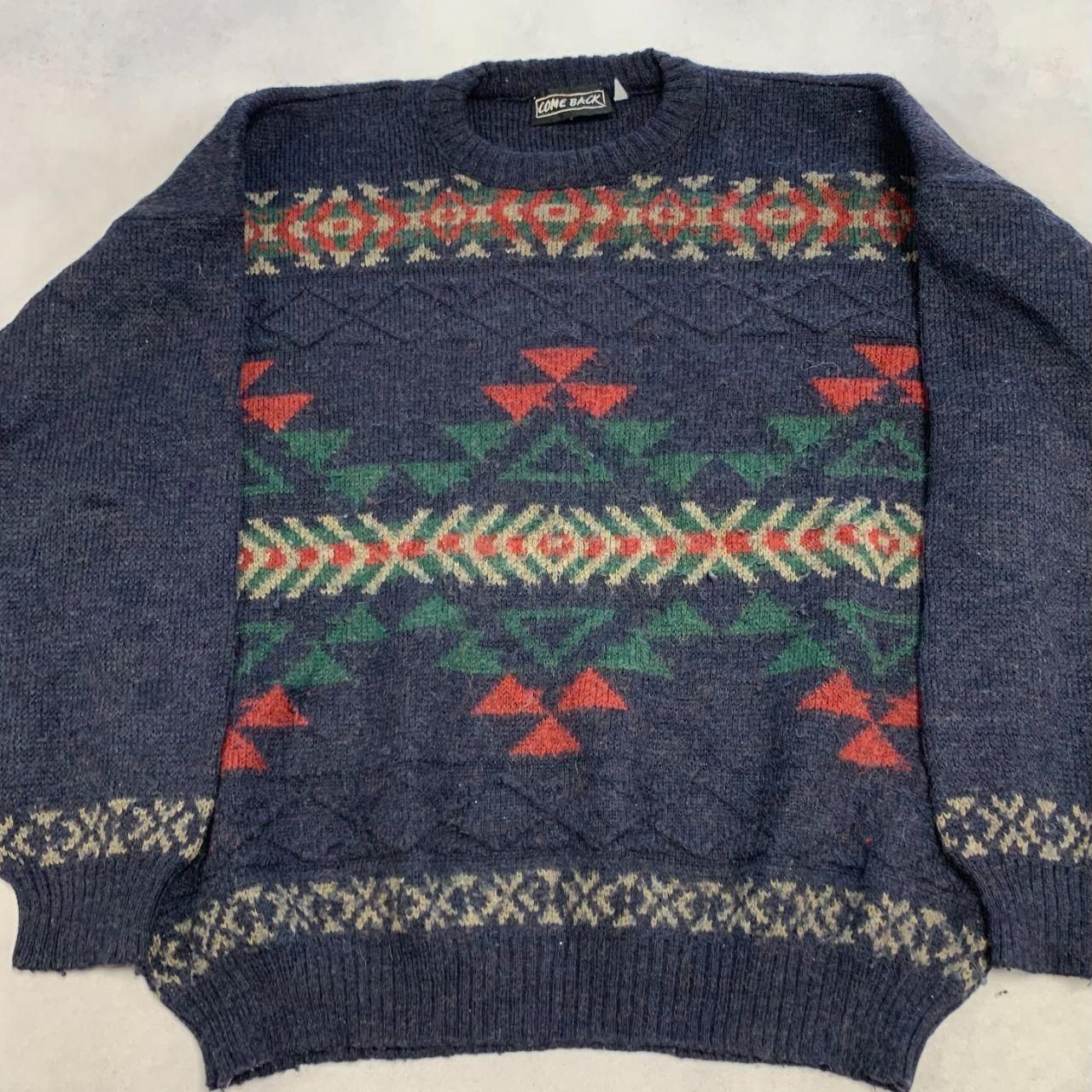 как выглядит Vintage Abstract Knitted Jumper Patterned Grandad Chunky Knit Sweater Mens L фото