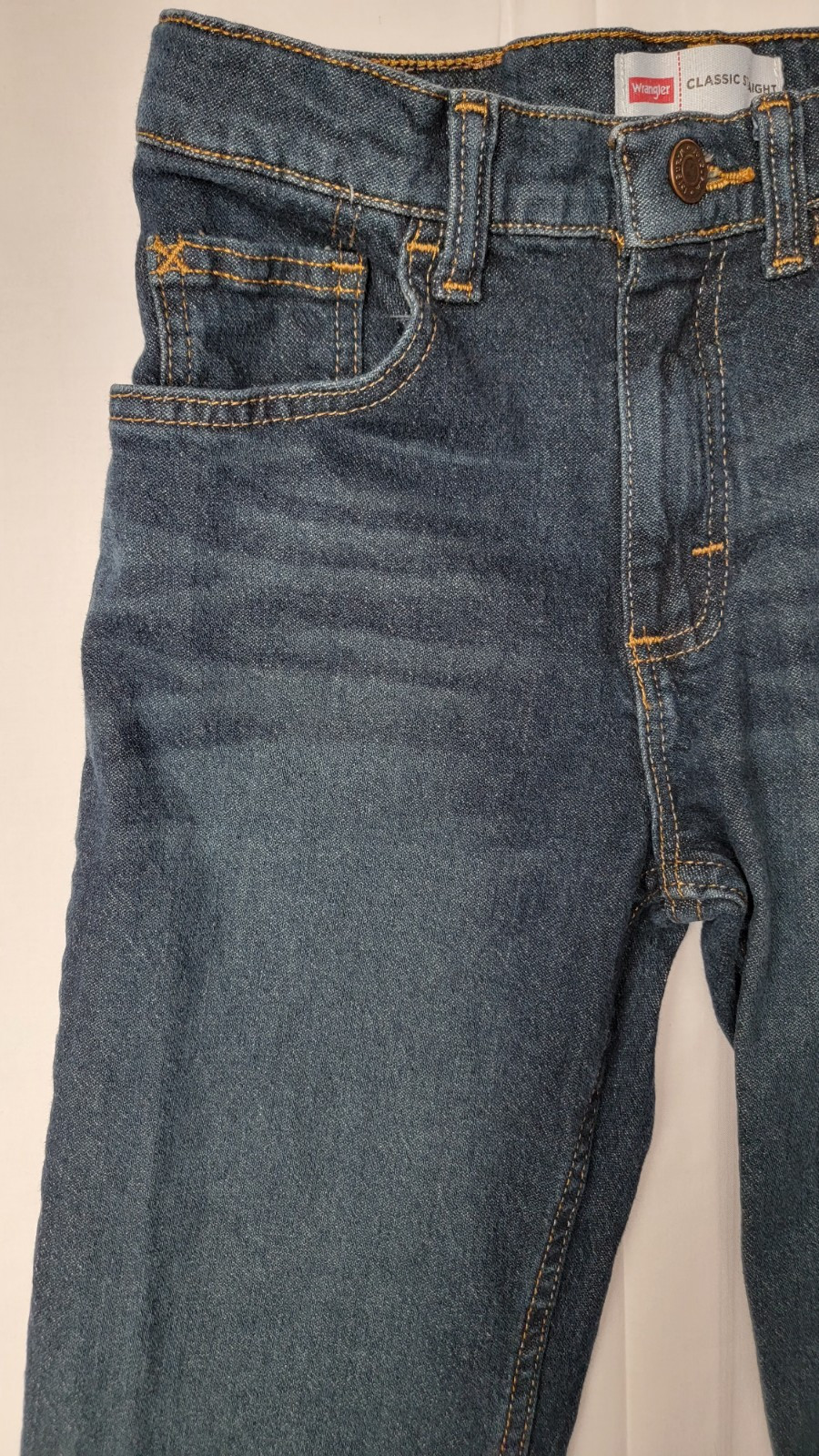 как выглядит Wrangler Jeans Boys Size 12 Slim Classic Straight Adjustable Waist Blue Dark фото