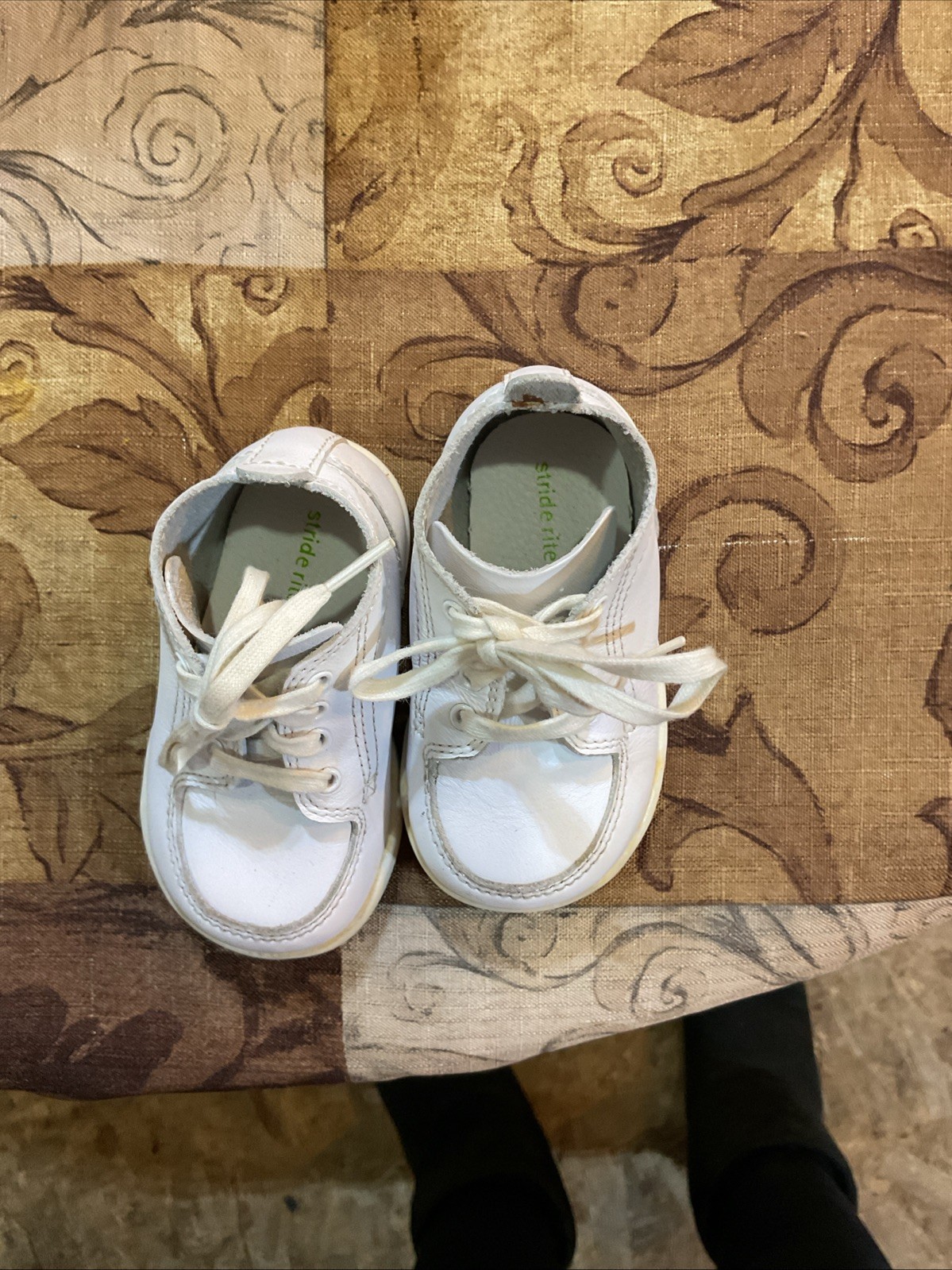 Vintage Stride Rite Leather baby shoes Size 3W Flexible Moccassin White Infant