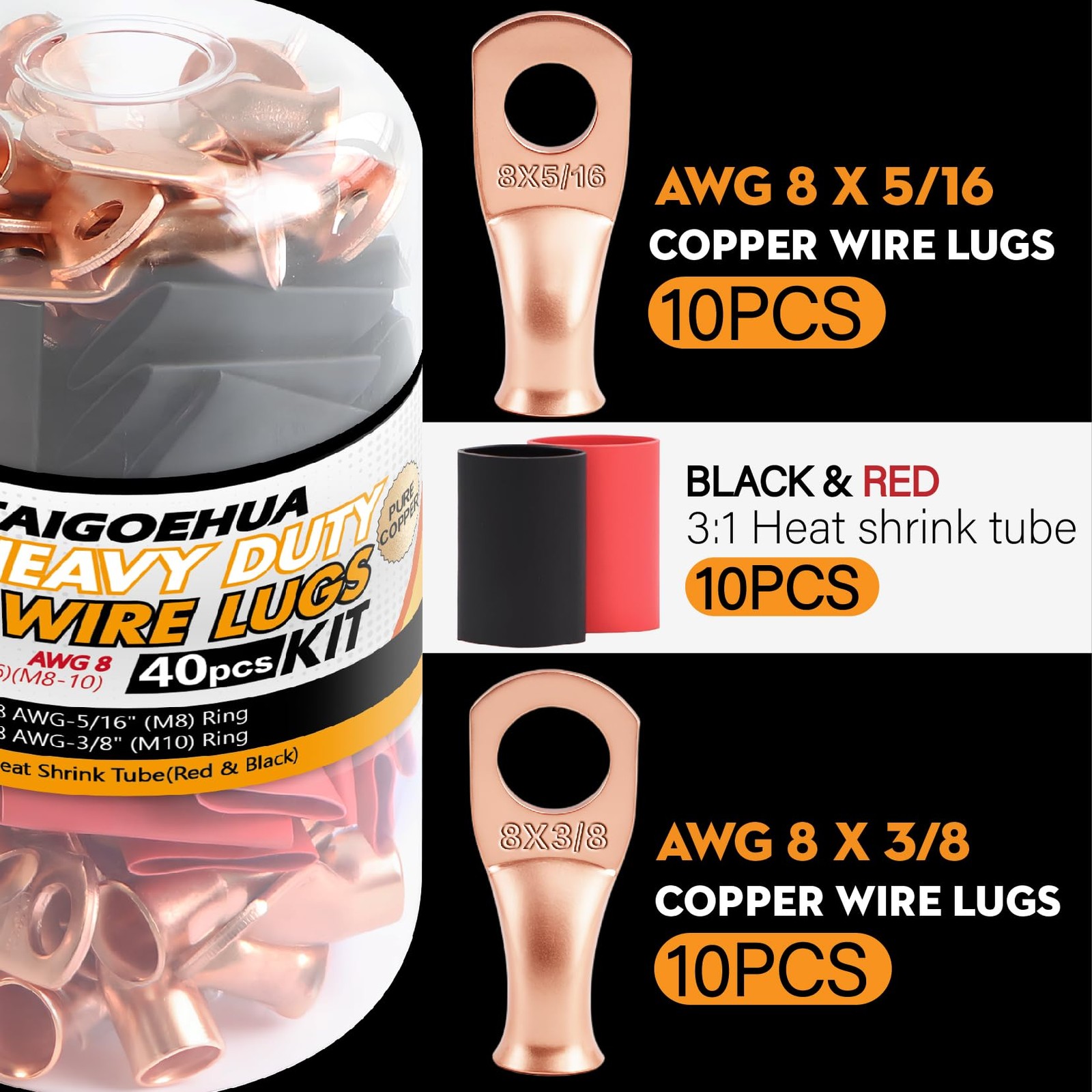 40 PCS Battery Cable Copper Wire Lugs Ends, Terminal Connectors, Heat Shrink