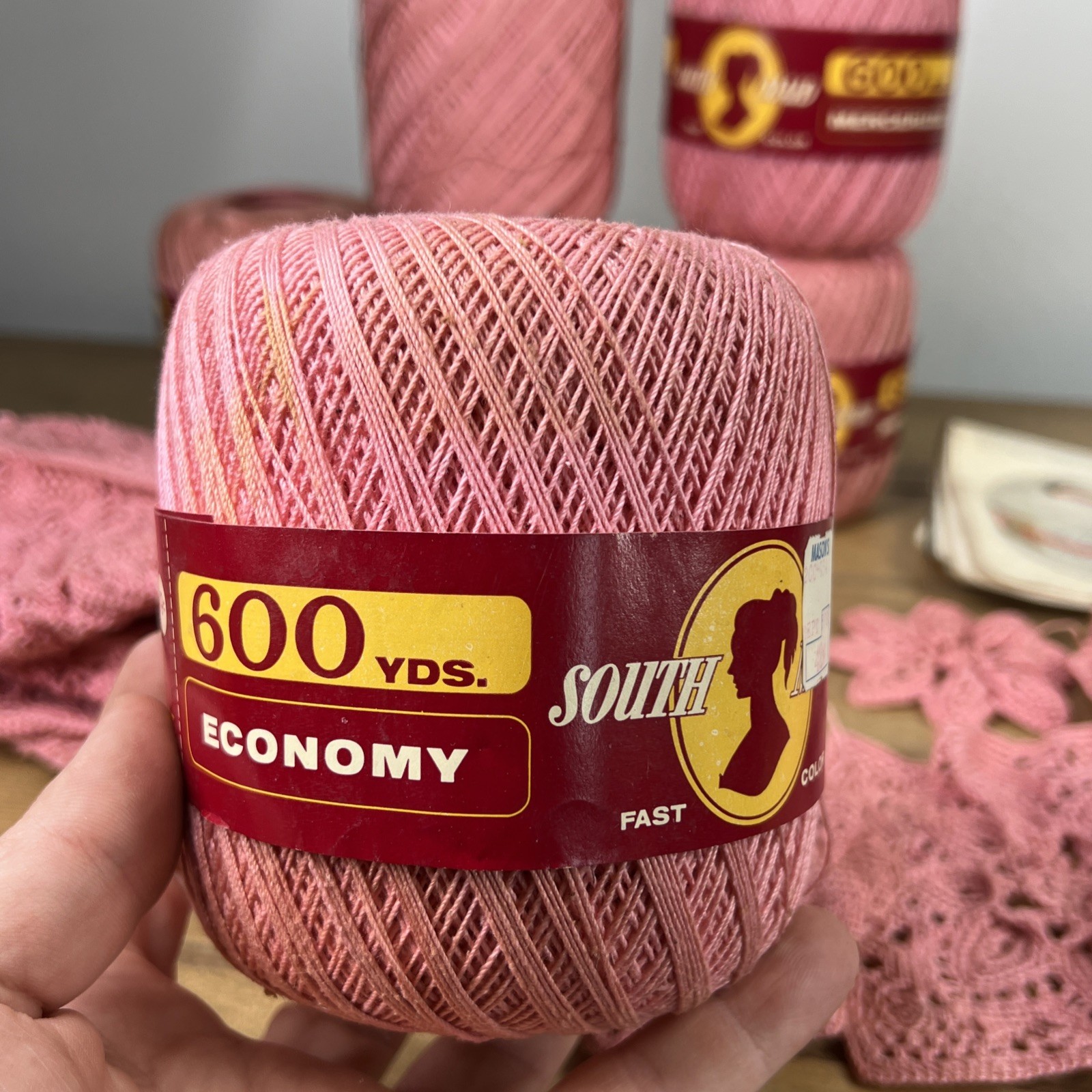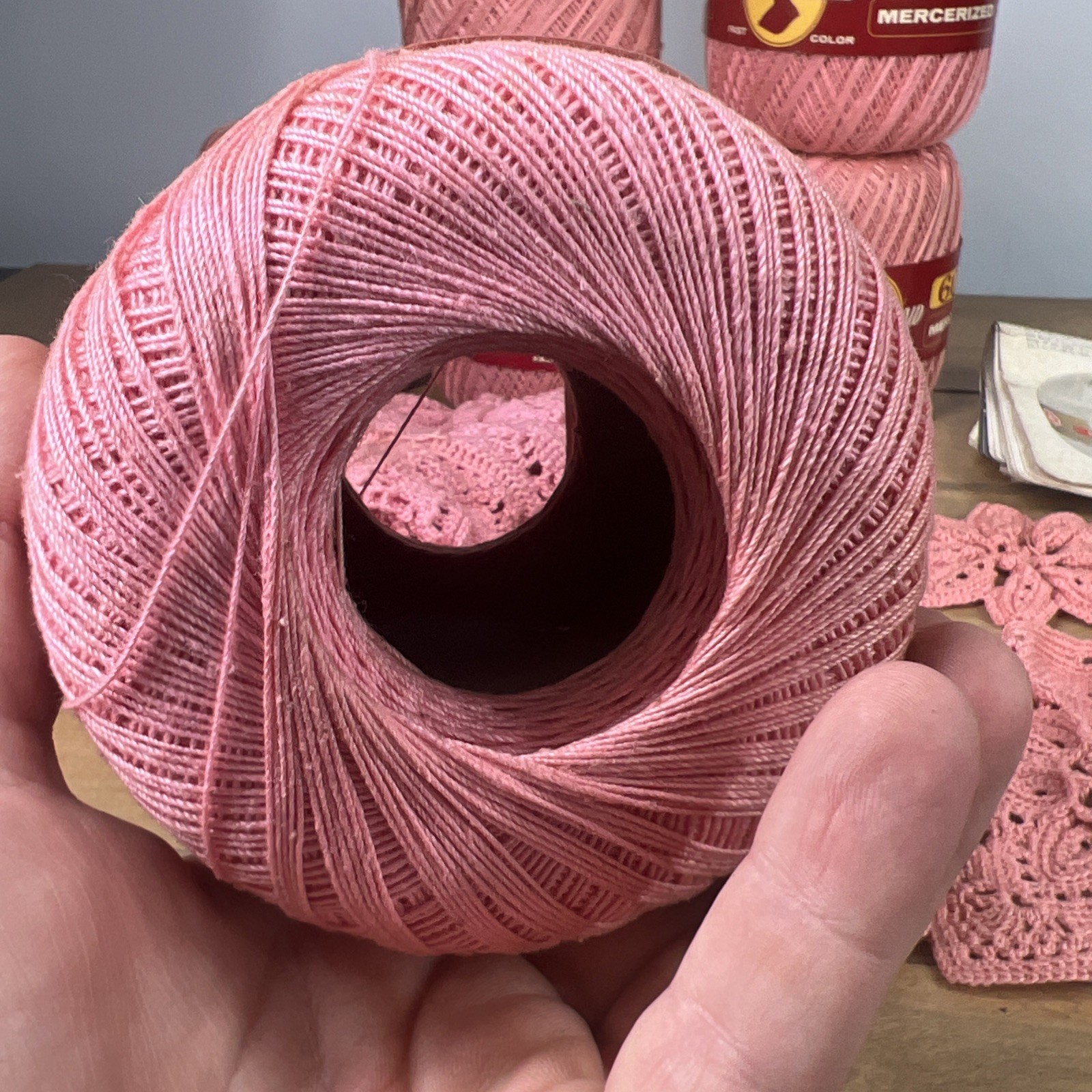 как выглядит Lot of 7 Mercerized Cotton Crochet Thread D-54 Size 10 Pink Color 600 Yd VTG фото