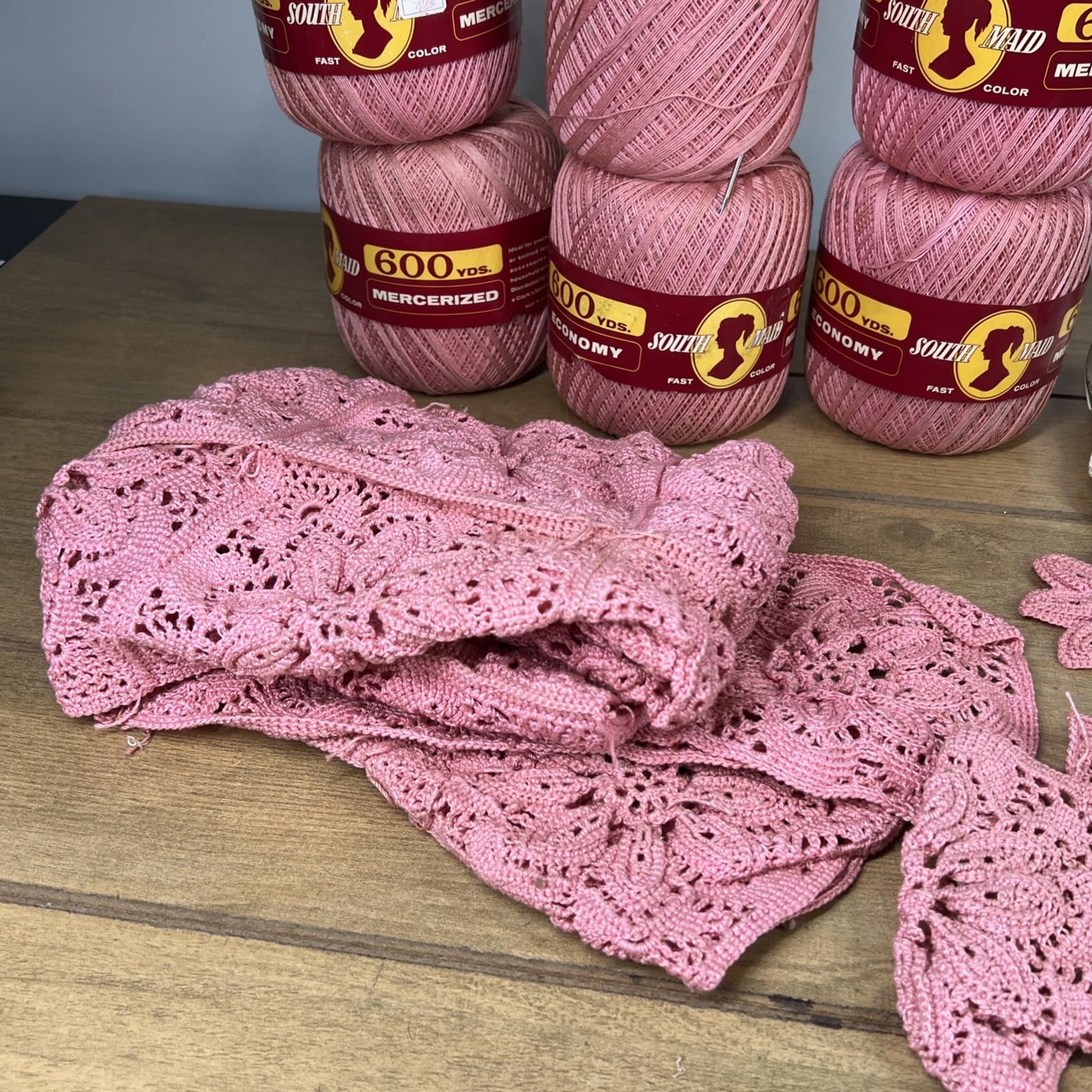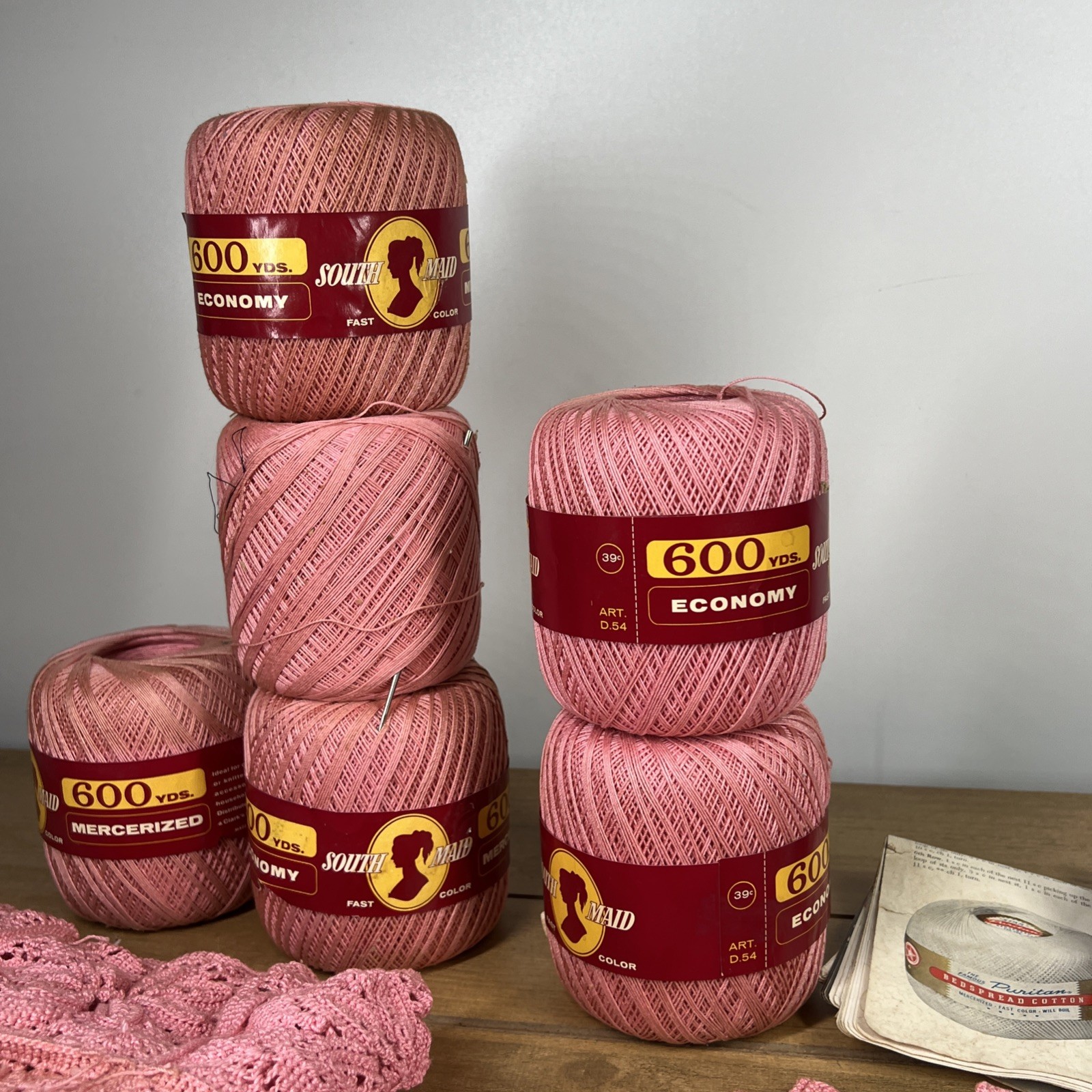 Lot of 7 Mercerized Cotton Crochet Thread D-54 Size 10 Pink Color 600 Yd VTG