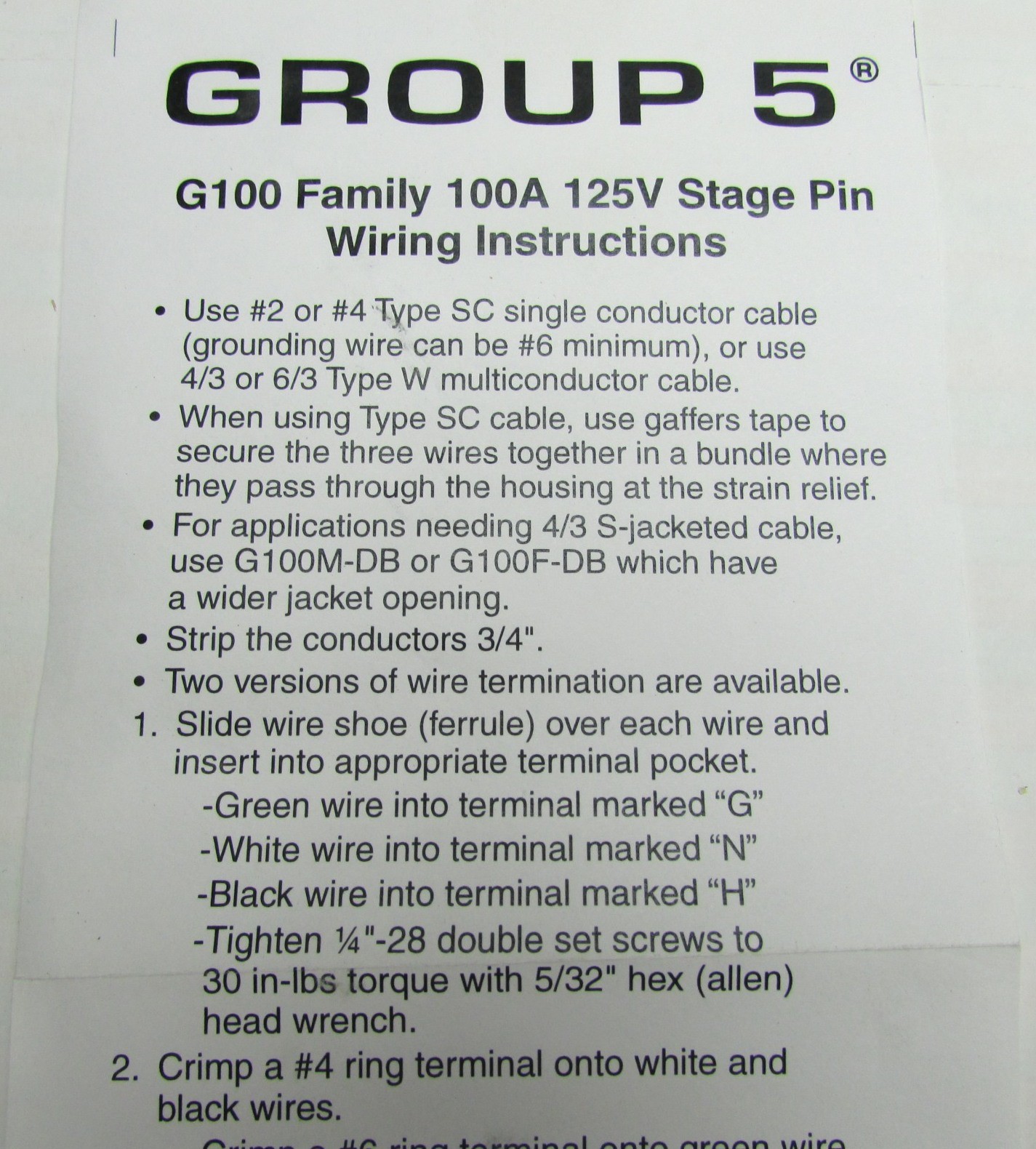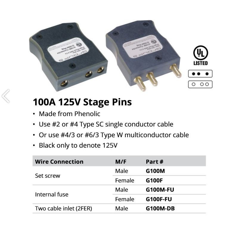 Marinco Group 5 Inline Male Stage Pin Connector Plugs 100A 125V 2AWG 4AWG G100M