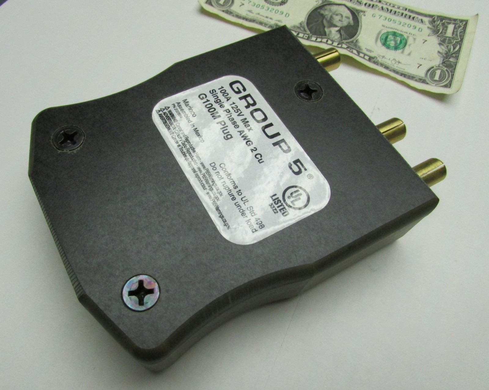 как выглядит Marinco Group 5 Inline Male Stage Pin Connector Plugs 100A 125V 2AWG 4AWG G100M фото