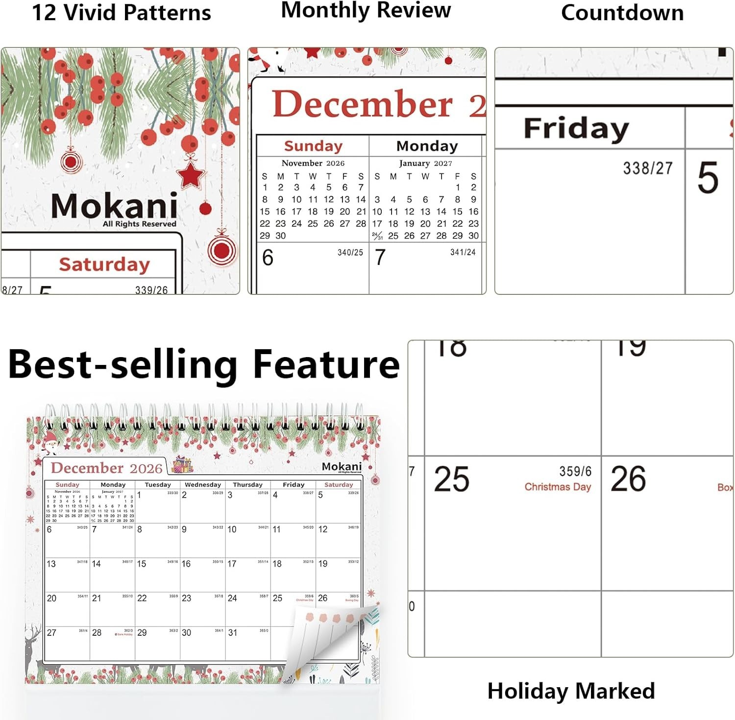 • Small Desk Calendar 2026-2027, Standing Desktop Calendar Jan.2026-Jun.2027, A...