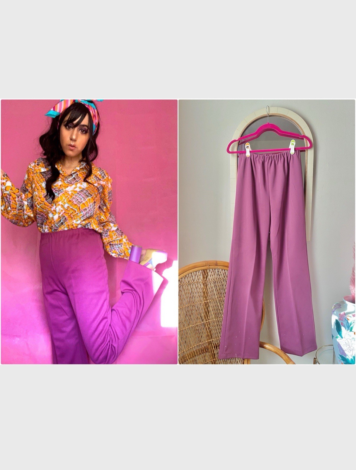 Vintage 1970s Women's 2 Orchid Purple Mauve High Waist Straight Leg Pants