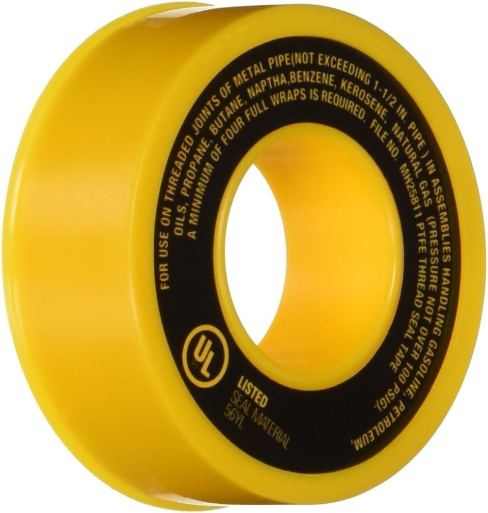Yellow PTFE Thread Seal Tape - 260 In. for Gas and Plumbing Applications