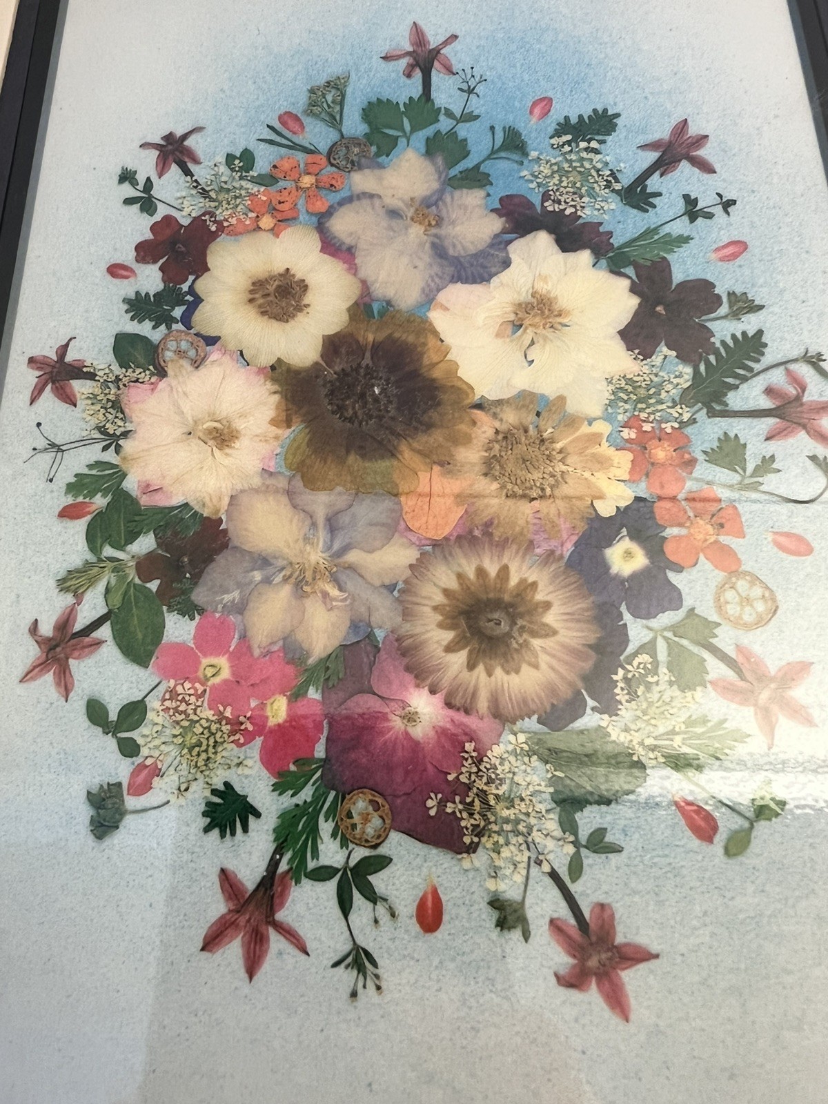 Vintage Framed Pressed Dried Flowers 9.5 x 11.5 Wall Art in gold frame