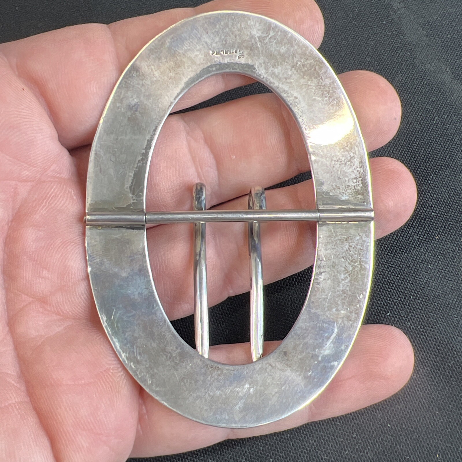 как выглядит Victorian Belt Buckle Floral Etched Sterling Silver 2 3/8" x 3 3/8" MARKED фото