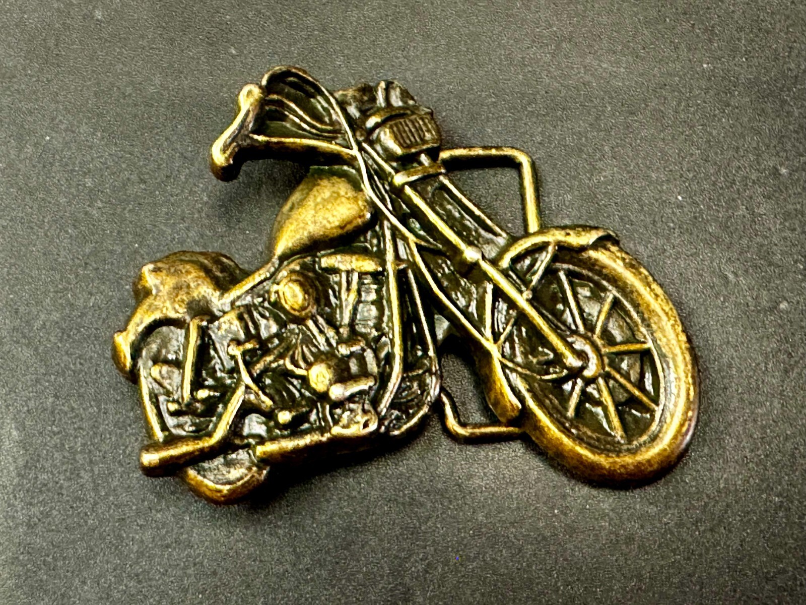 Motorcycle Big Hog Bike Figural Cutout Gold Tone Bikers Vintage Belt Buckle