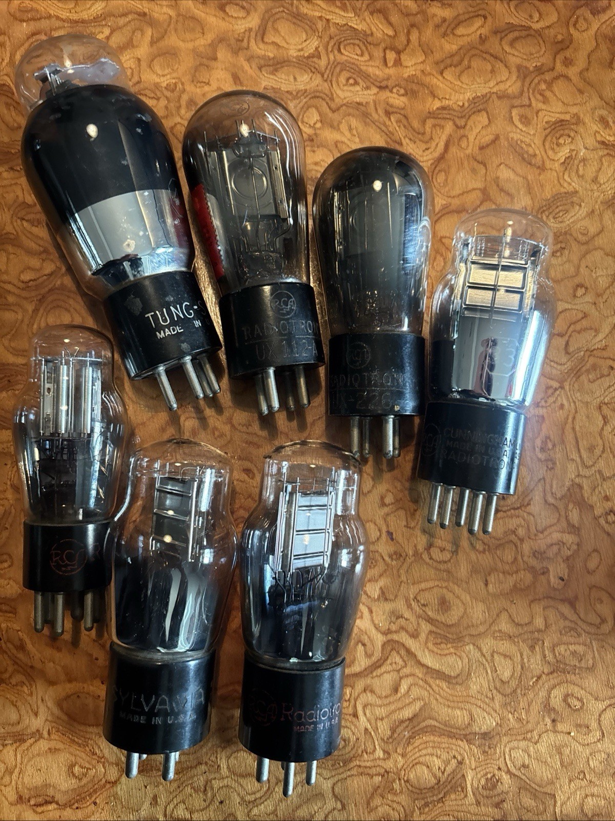 как выглядит Lot of 7 Vintage Radio Vacuum Tubes Untested RCA, Sylvania, Cunningham, Tung Sol фото