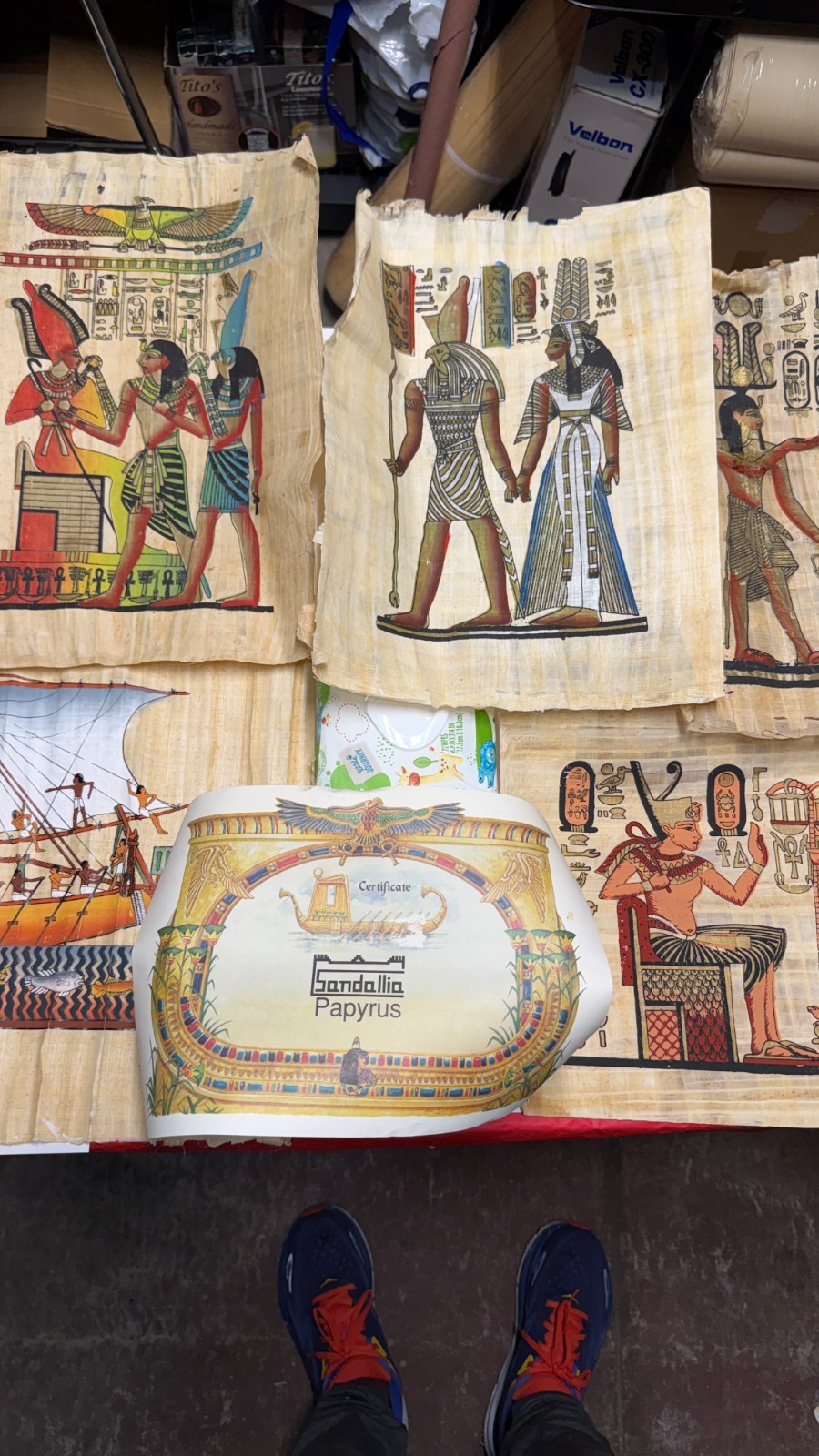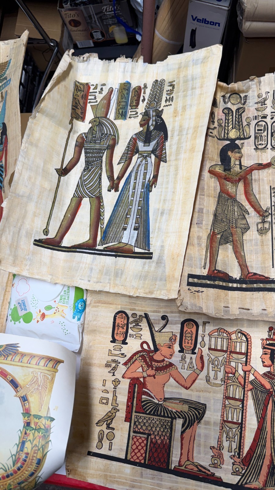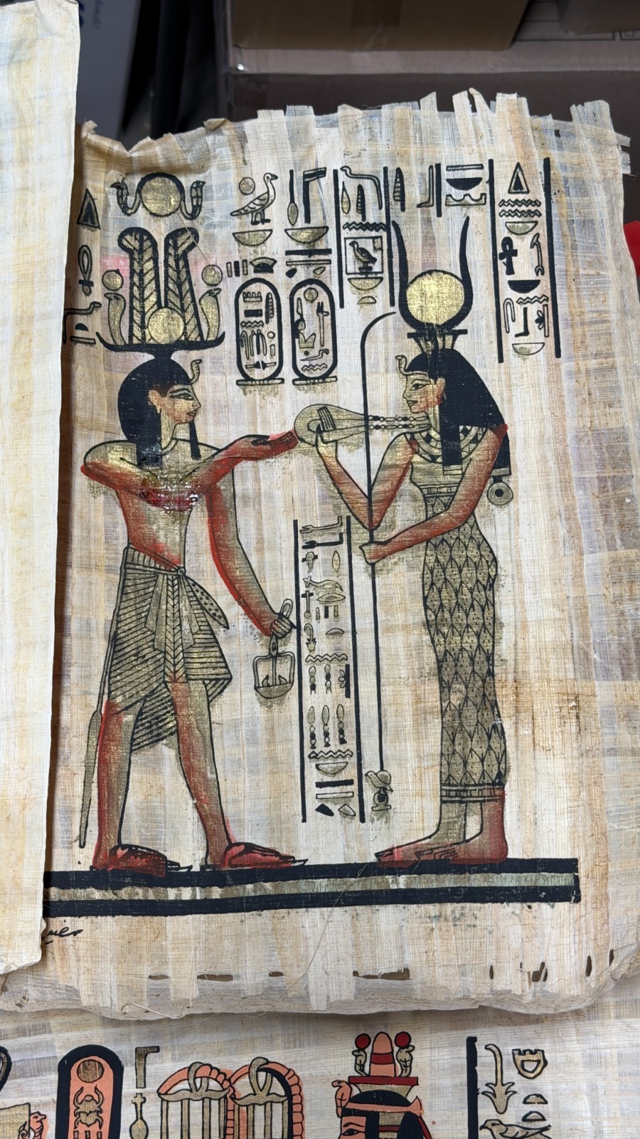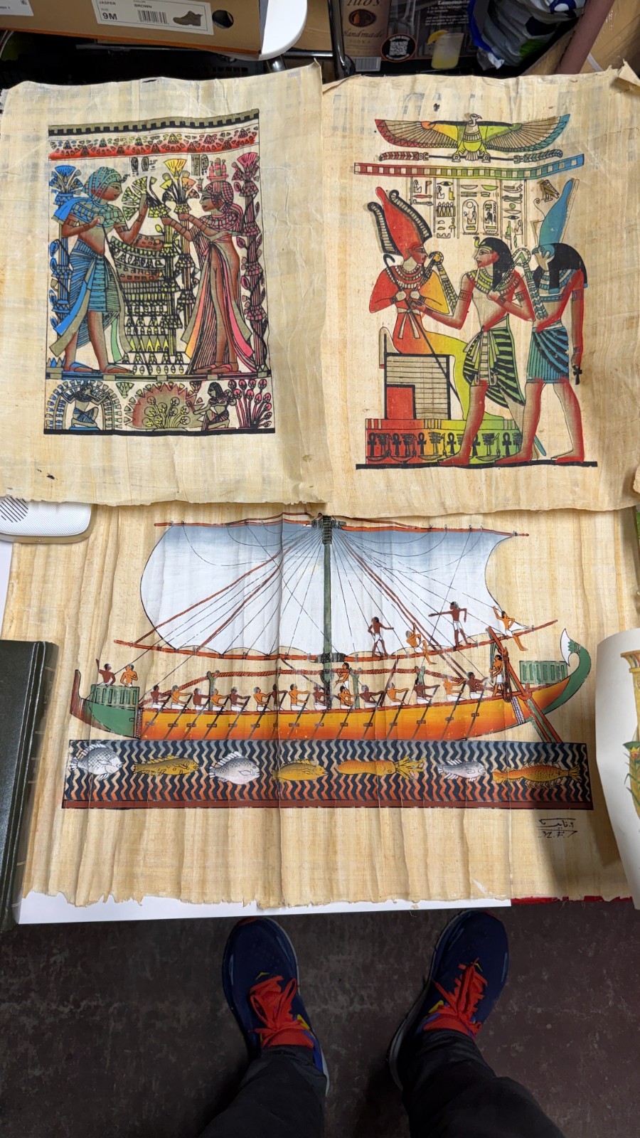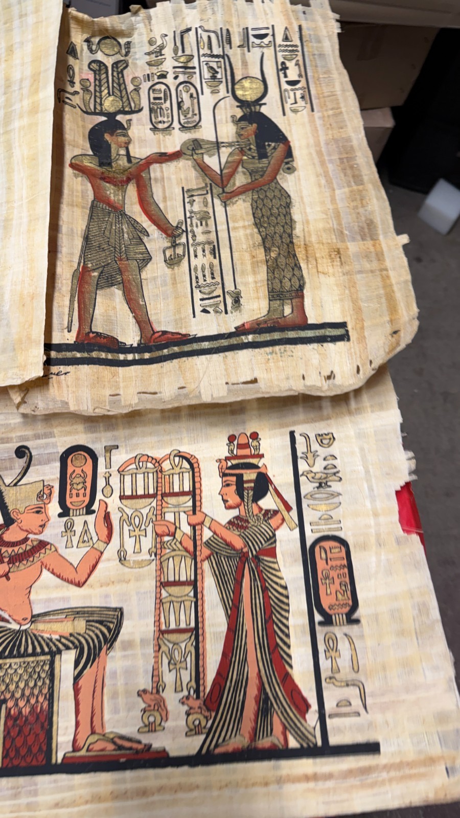 • Lot of 6 Authentic Egyptian Papyrus Paintings Sandallia Handmade Art