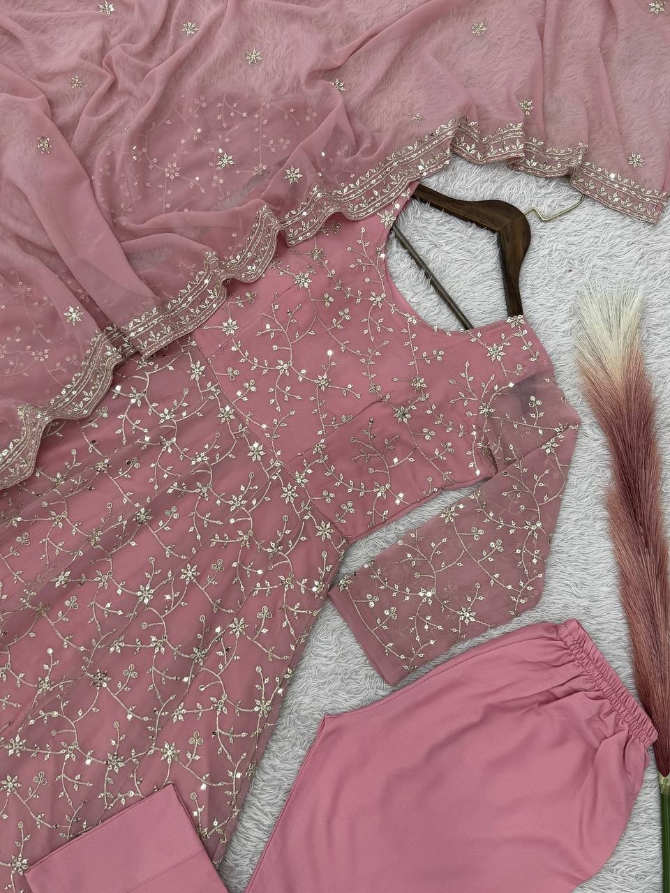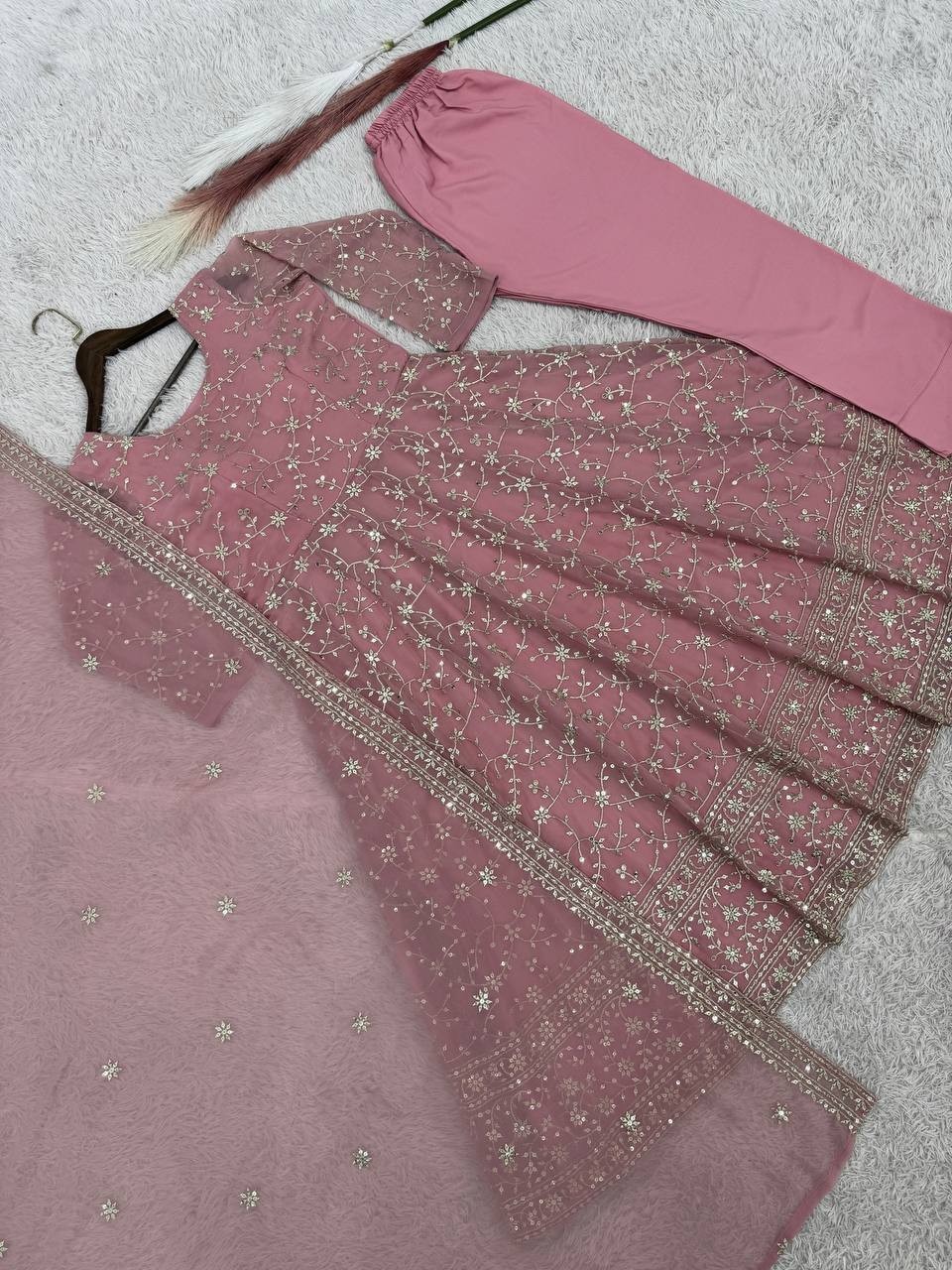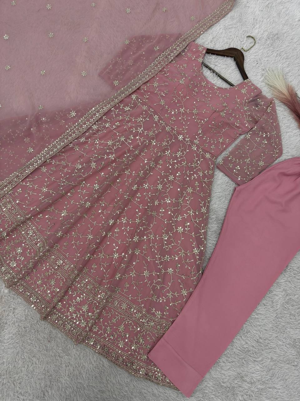 как выглядит Latest Heavy Faux Georgette Gown Bottom With Pink Dupatta For Festival Wear фото