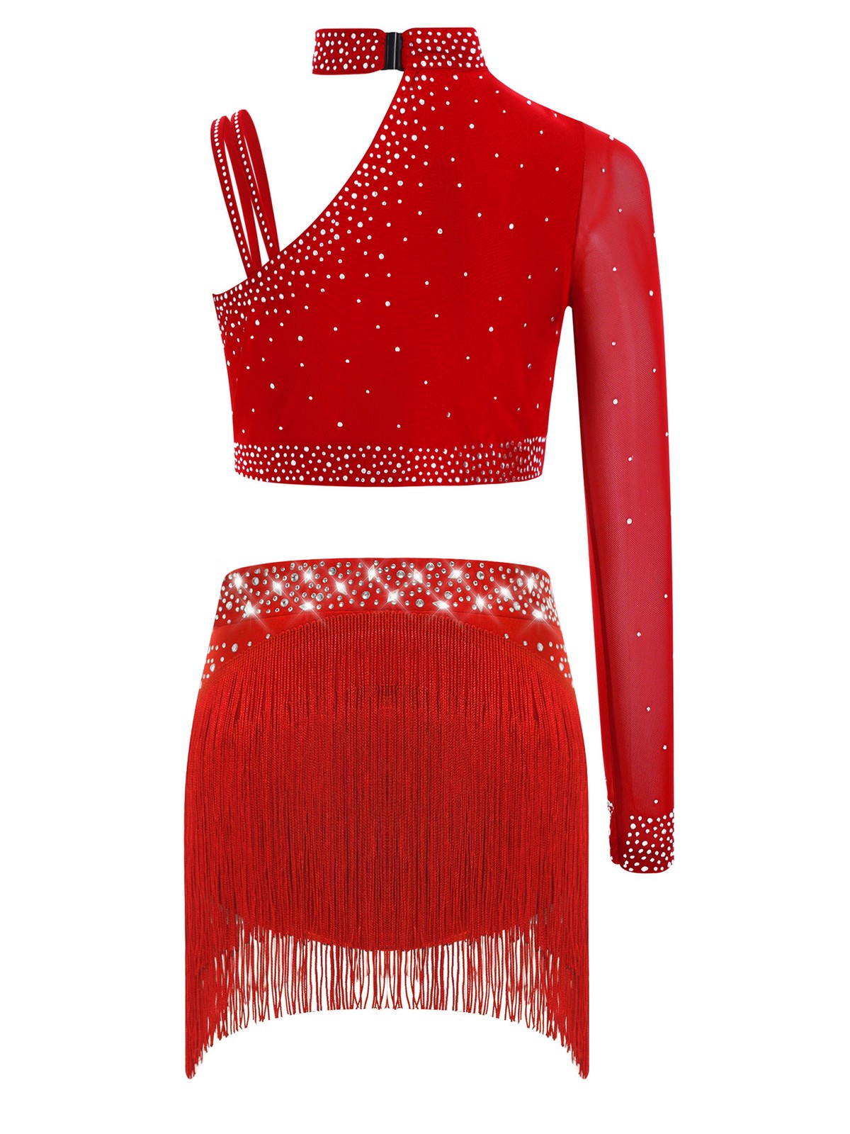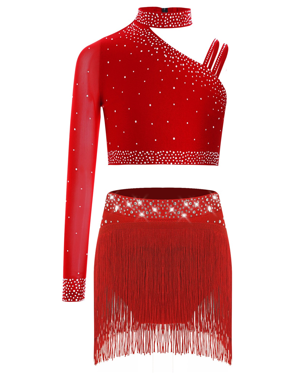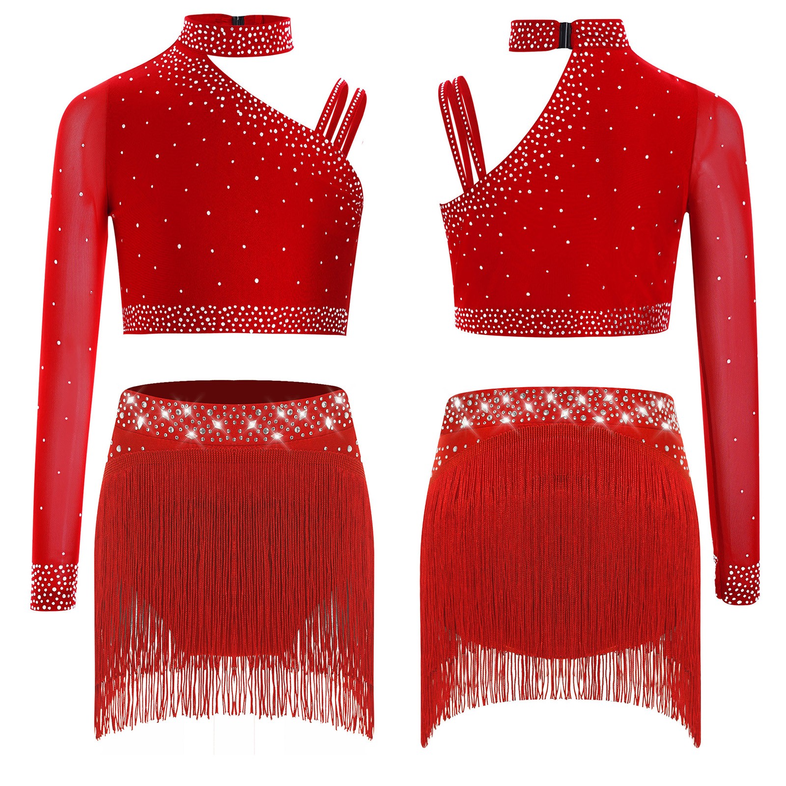как выглядит Kids Girls Sparkly Lyrical Dance Outfits Crop Top with Fringe Bottoms Dancewear фото